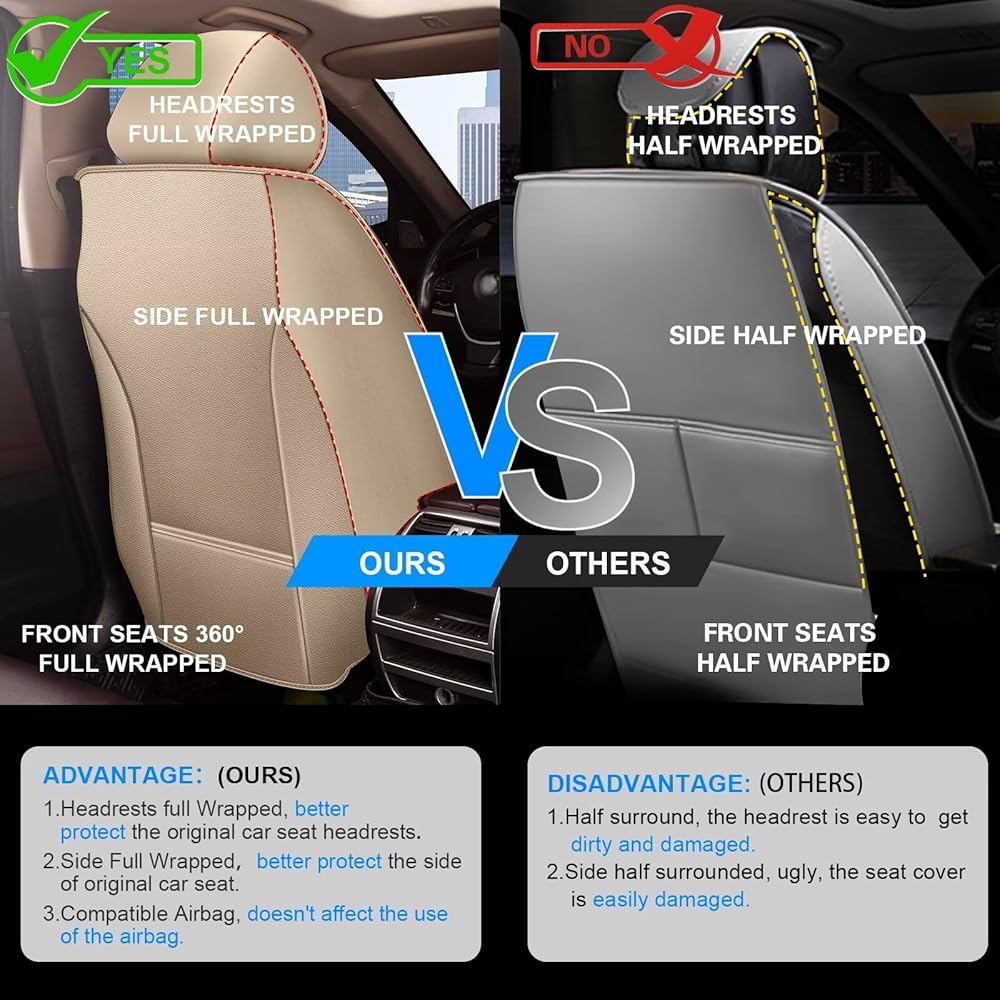 🍀【ملاءمة مثالية】غطاء المقعد هذا يناسب Hyundai Santa Cruz 2022 2023 2024 2025 (غطاء مقعد كامل). غطاء المقعد يناسب مقعدك، ويؤمن وسادة مقعدك بشكل مثالي ولن يتشوه أو يتحرك مع الاستخدام طويل الأمد. ملحوظة: يرجى التأكد من أن مساند رأس المقعد قابلة للإزالة قبل الشراء.