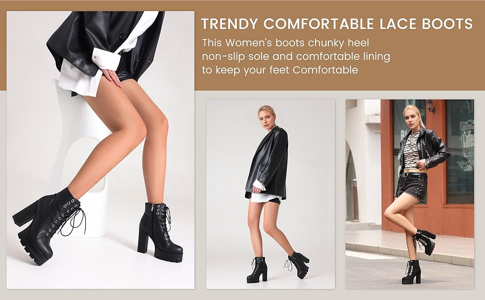 HIGH HEEL BOOTS: The heel height of chunky boots for women is about 4.72in/12cm, platform height is about 1.57in/4cm.