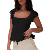 Material: Raruxxin Women Y2k Square Neck Lace Top is made of high quality polyester fabric, skin friendly, soft and comfortable to wear, a must have Ruffle Lace Trim T Shirt in every girls wardrobe