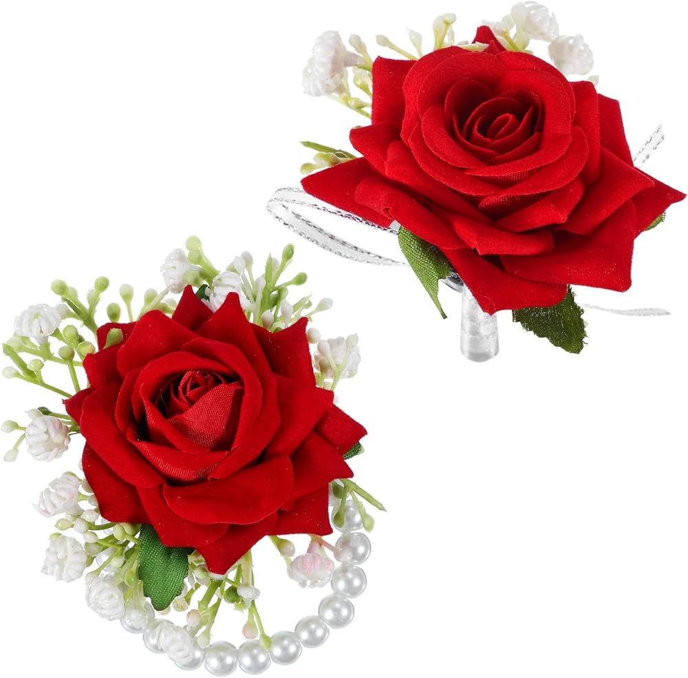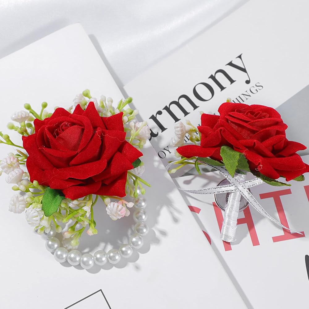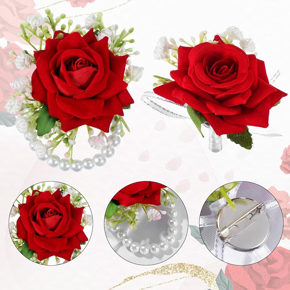 2 قطعة مجموعة الصدار الوردة الحمراء لؤلؤة اليد زهرة المعصم الصدار لحفل الزفاف حفلة العودة للوطن حفل الذكرى السنوية حفلة موسيقية زهرة الصدار الزفاف وصيفه الشرف النساء