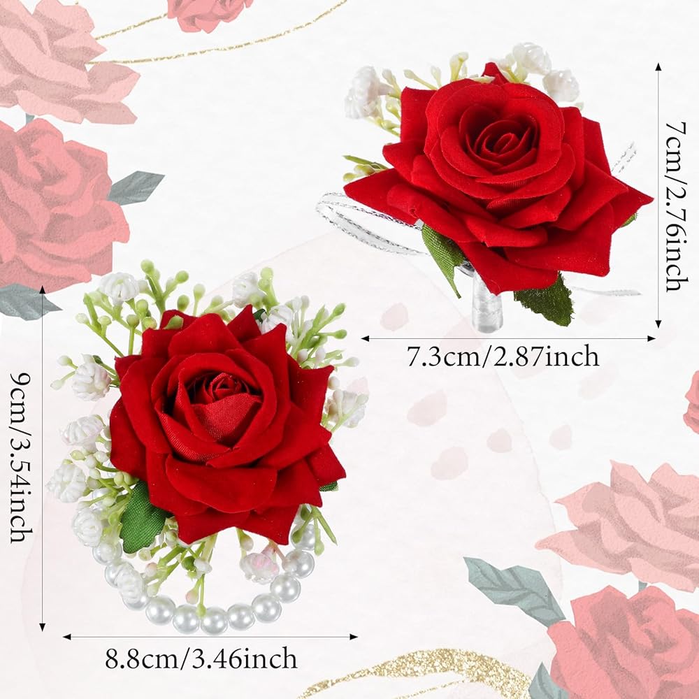 Product size: Corsage: 2.87 × 2.76 inches/7.3 × 7 cm; Wrist Flower: 3.46 × 3.54 inches/8.8 × 9 cm
