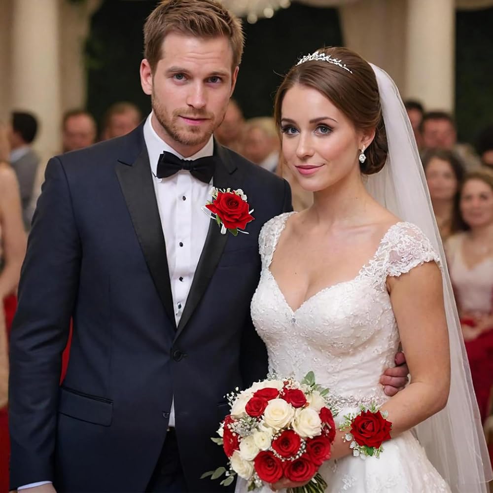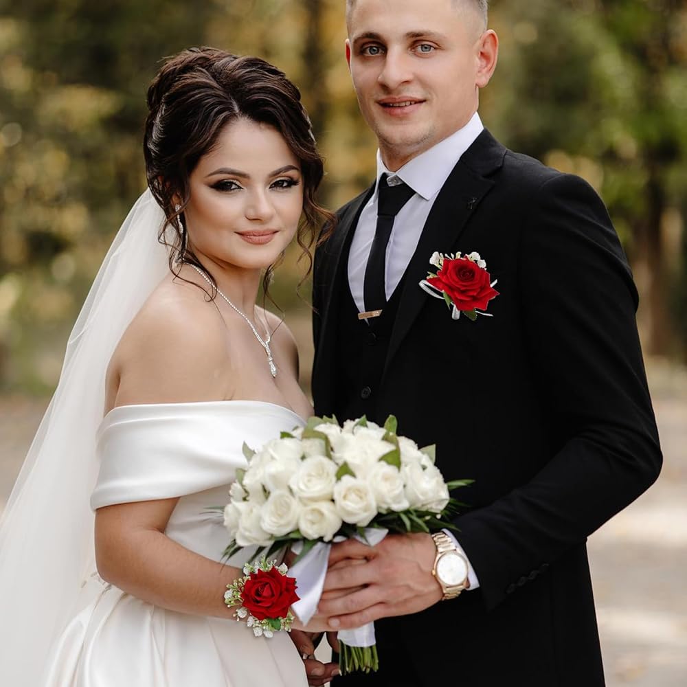 【Exquisite Set】The package contains corsage and boutonniere set, rose decorated eucalyptus leaves, suitable for weddings and proms. Corsage can be matched with many beautiful holiday costumes, adding more color and beauty to your decoration venue.