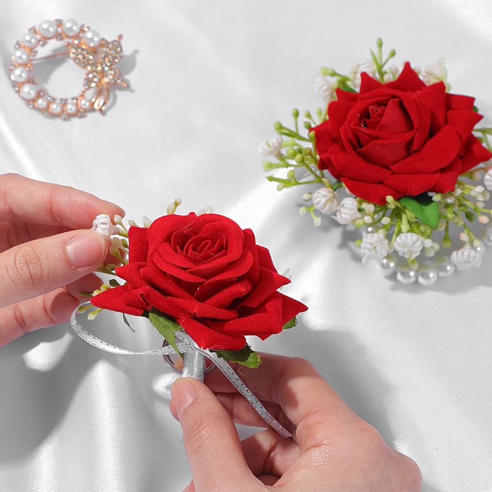 【Easy To Match】Red corsage can be pinned on a suit dress, elegant and fashionable, it will look more formal when attending someone else's wedding, and boutonniere also shows respect for others when worn on the body.