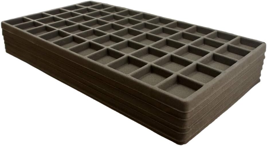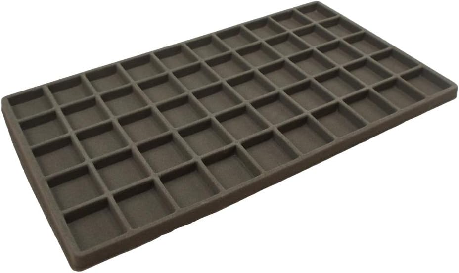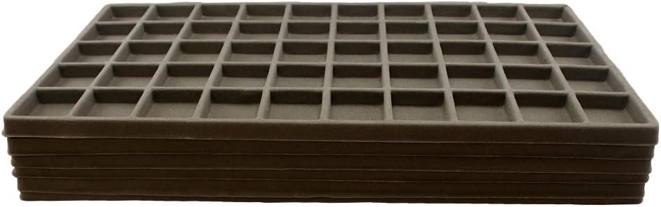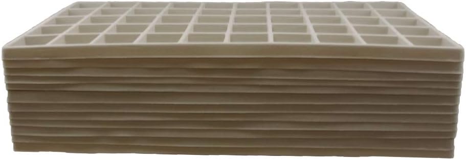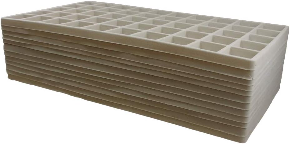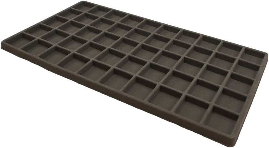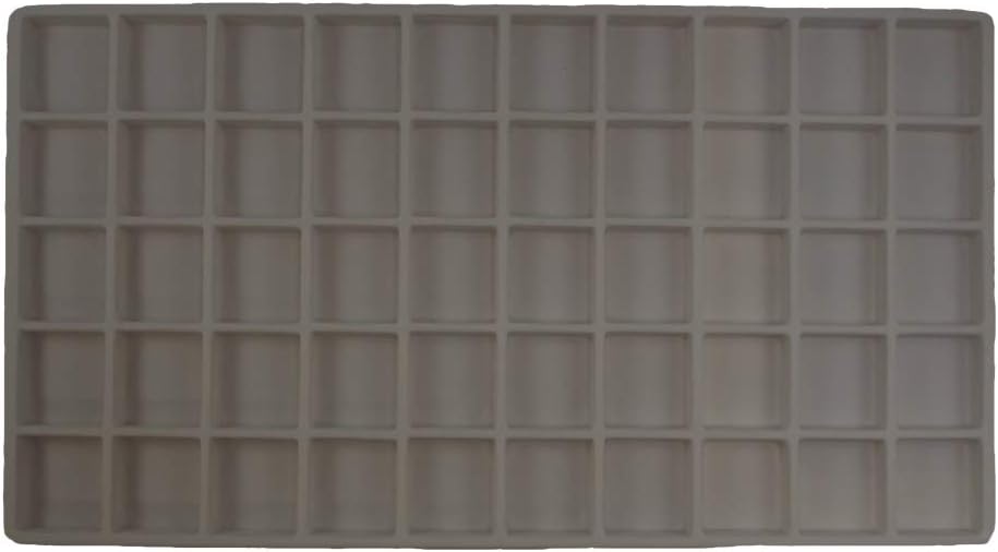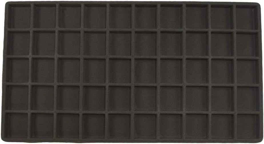 These 50-Slot Flocked Storage Tray Inserts from N'icePackaging are an excellent way to showcase, store, or organize your beloved items and jewelry. Each tray is meticulously Thermo-Formed to exact specifications and then flocked for a professional, textured velvet-like appearance and feel. They feature 50 slots per tray, measuring 1 1/8" x 1 1/4".