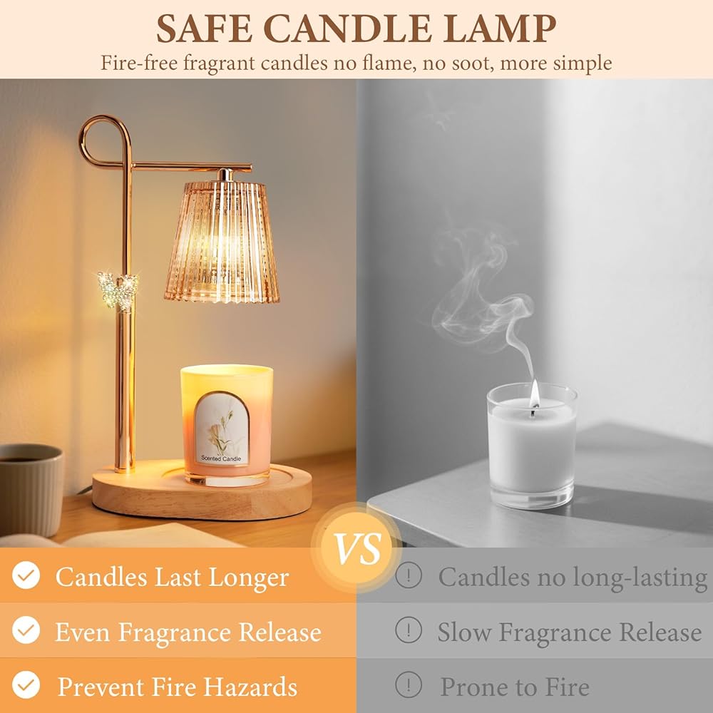 مصباح ذوبان الشموع القابل لضبط الارتفاع: يمكننا بسهولة ضبط الارتفاع من خلال عمود المصباح ليناسب جميع أنواع الشموع وللتحكم في معدل الذوبان، من أجل إطلاق العطر بشكل أسرع أو أبطأ. القاعدة الخشبية عالية الجودة مع وسادات مضادة للانزلاق تجعل تعديل الارتفاع أكثر استقرارًا وأمانًا.