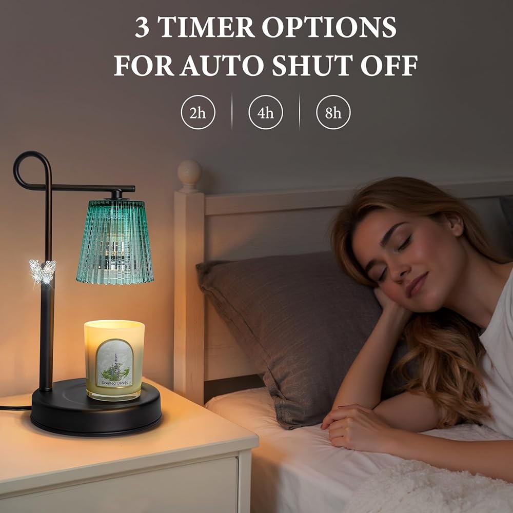 مع Timmer & Dimmer: تتيح وظيفة المؤقت ضبطه لمدة 2 أو 4 أو 8 ساعات، وسيتم إيقاف تشغيله تلقائيًا في الوقت المطلوب. وهذا يوفر الراحة ويضمن أيضًا السلامة مقارنةً بالشموع التقليدية. توفر وظيفة التعتيم 4 مستويات سطوع قابلة للتعديل لتناسب الاحتياجات المختلفة. يذيب مصباح الشمع الشمعة بشكل متكرر، ويطلق العطر بشكل طبيعي ومتساوي.