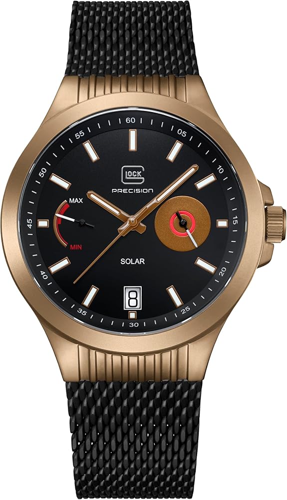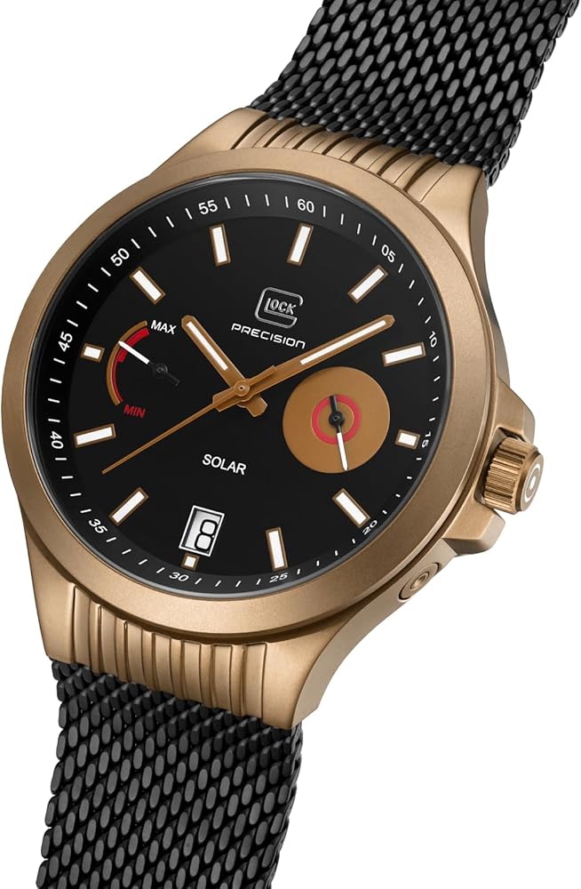 ساعة جلوك للرجال كوارتز قابلة لإعادة الشحن بالطاقة الشمسية | علبة 42 ملم | ساعة يد بعلبة فولاذية وعرض للتاريخ | ساعة رجالية بمؤشرات ومؤشرات سوبرلومينوفا سويسرية | GW-19 (ذئب البراري)