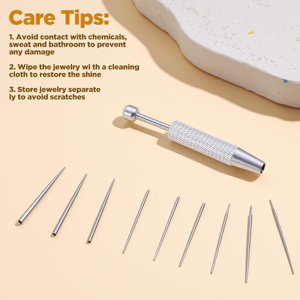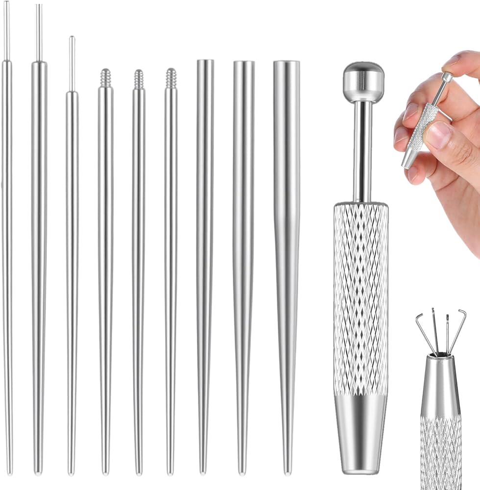 Stainless Steel Construction: The piercing tools for changing jewelry Set is crafted from high-quality stainless steel, ensuring durability and resistance to rust. This material choice makes piercing changing tool a reliable tool for frequent use and easy cleaning, essential for maintaining hygiene during piercing and jewelry changes. Trust the piercing tools for all your piercing needs.