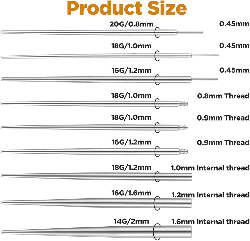 Complete Professional piercing grabber toolt: This comprehensive piercing kit includes 1 piercing ball grabber tool, 3 threadless insertion tapers, 3 externally threaded guides, and 3 internally threaded rods, covering all standard 14G-20G jewelry sizes. Whether you're changing your ear, nose, lip, or navel jewelry, this piercing taper kit provides the necessary tools to make the process smooth and hassle-free.