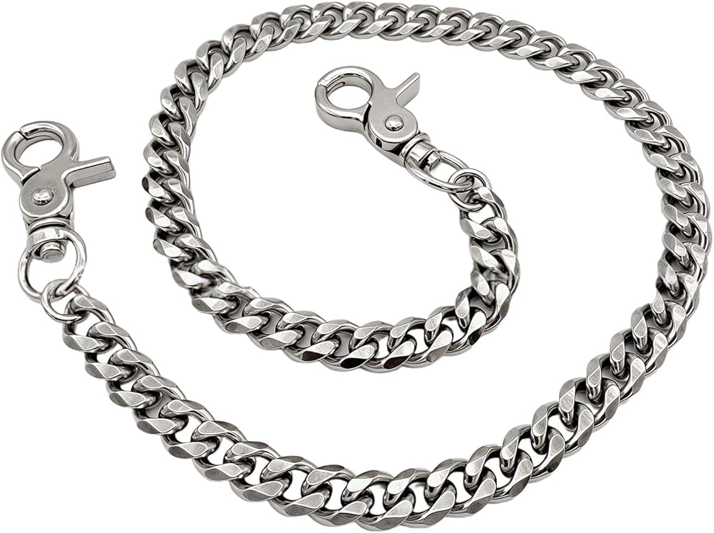 نمط Edgy Punk: تعمل سلسلة المحفظة هذه على رفع مظهرك مع هذه السراويل الجريئة ذات سلسلة المحفظة، والتي تتميز بسلاسل جيب لمظهر جمالي متمرد أو قوطي أو فاسق. مثالي للرجال والنساء الذين يحبون الموضة البديلة.