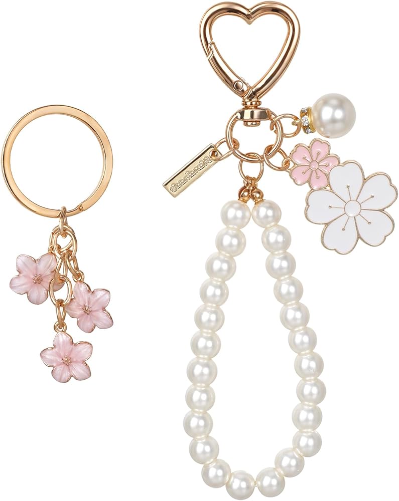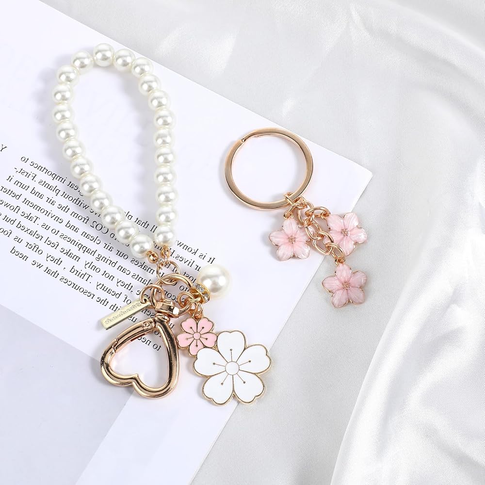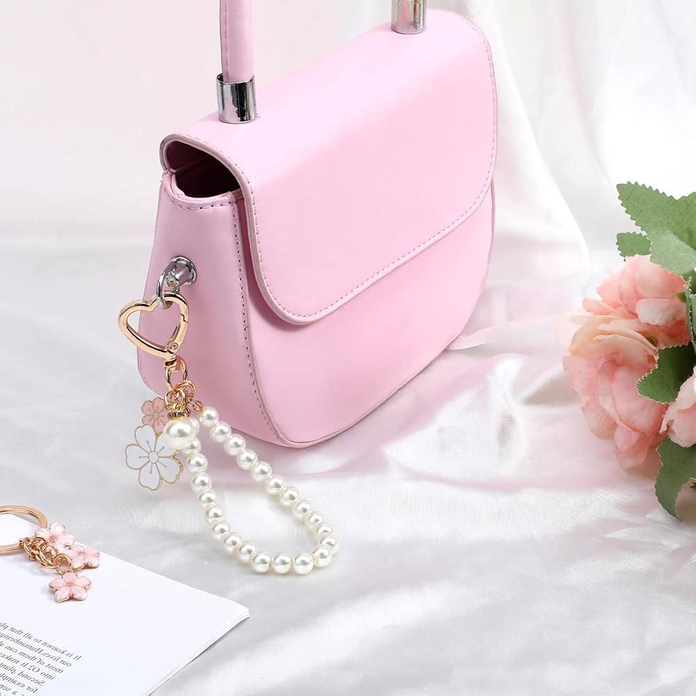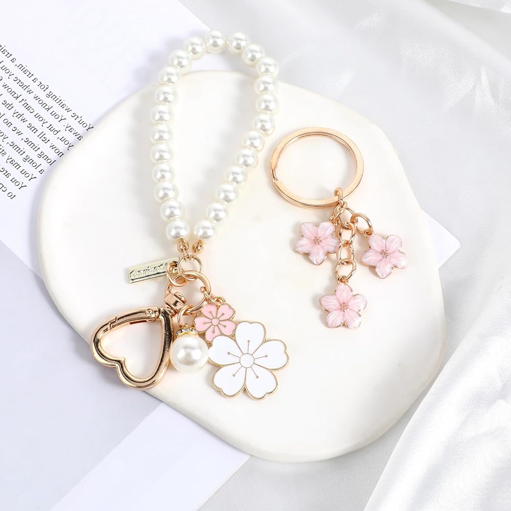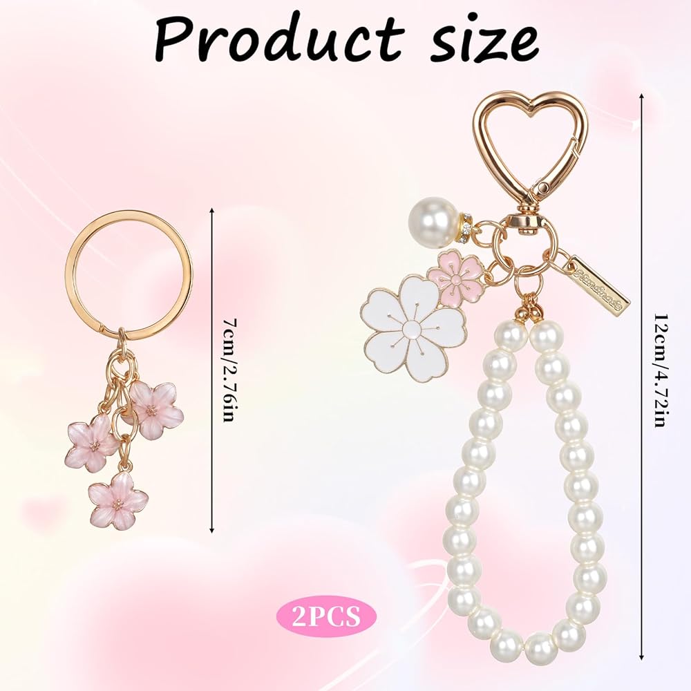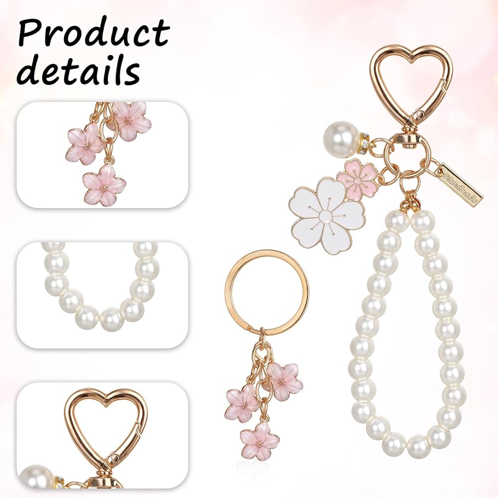 Product Includes: You will receive 1 white and pink cherry blossom pearl purse charm and 1 pink cherry blossom keychain pendant, which you can use together or separately, which is both fashionable and practical.