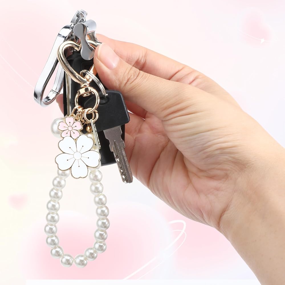 High-quality Material: Our white pearl beaded keychain wristlet is made of high-quality zinc alloy, the pearls are smooth and full, durable, not easy to fade and deform. The keychain charm is paired with a pink cherry blossom pendant and a gold heart-shaped snap design, adding a touch of elegance.
