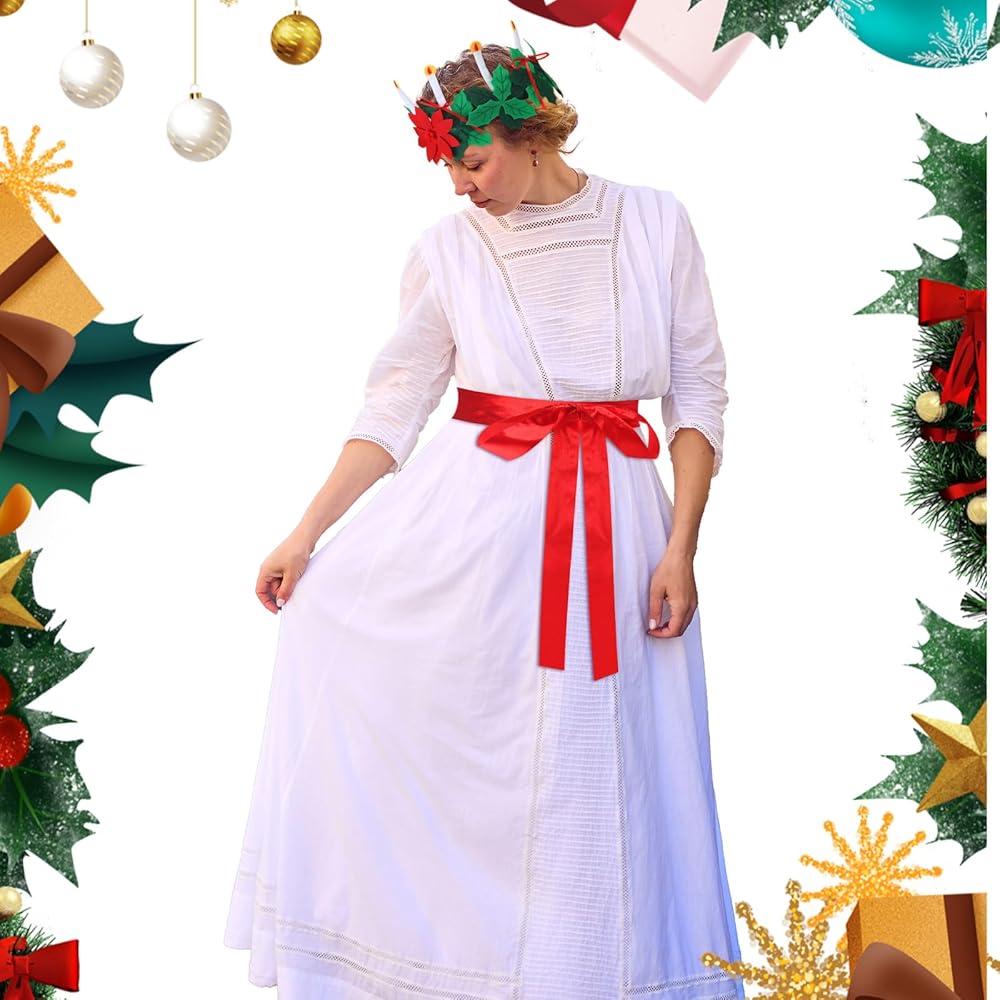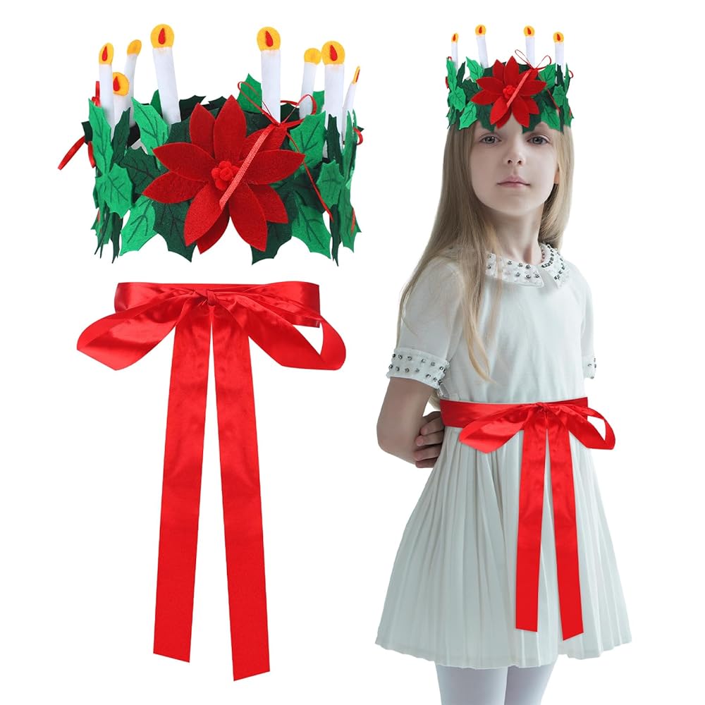 قطعتان من إكسسوارات أزياء عيد الميلاد سانت لوسيا مجموعة تاج وحزام سانكتا السويدية لوسيا كوين لهدايا عيد الميلاد زي النساء والبنات ومهرجان عيد الميلاد والغابات