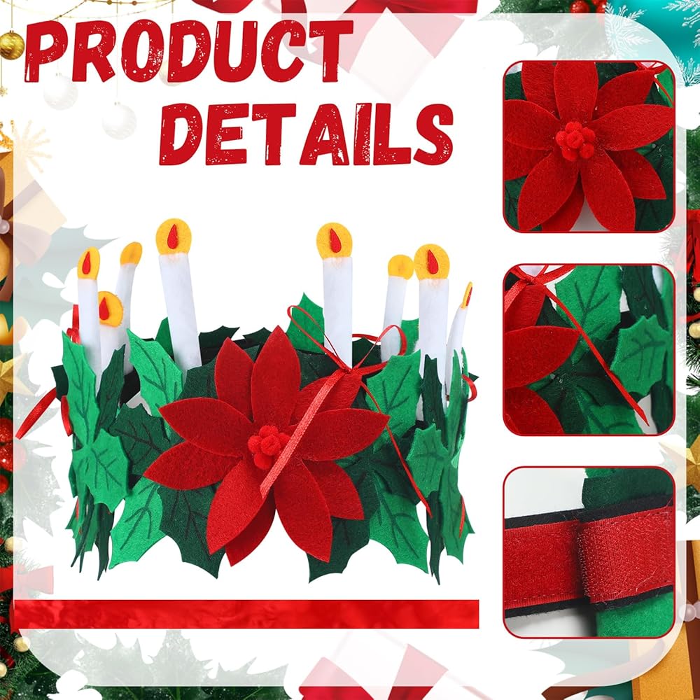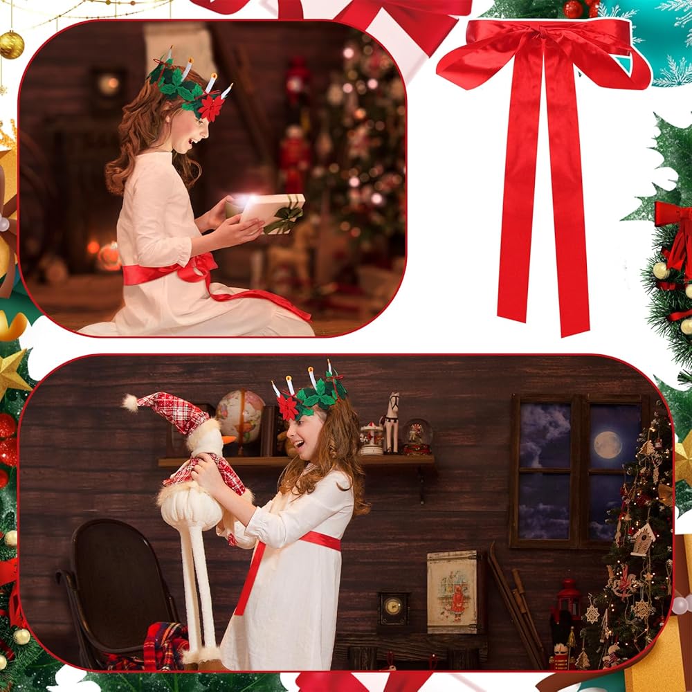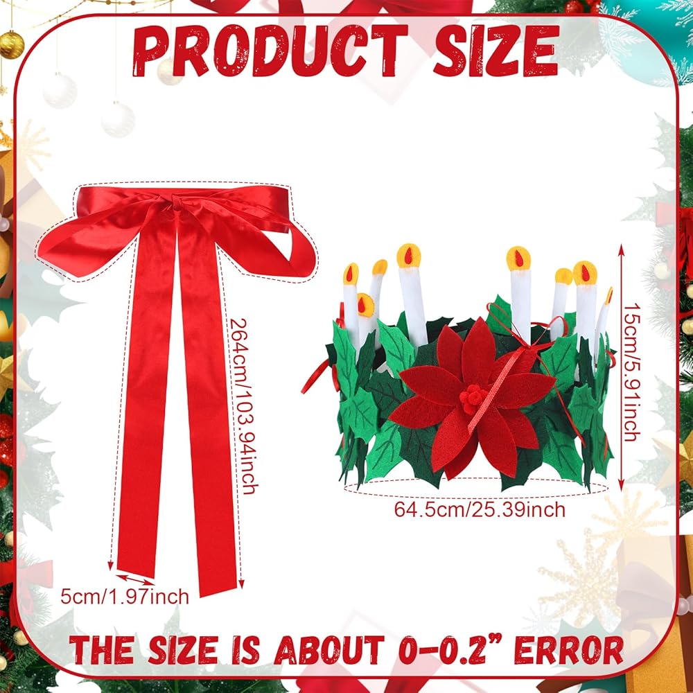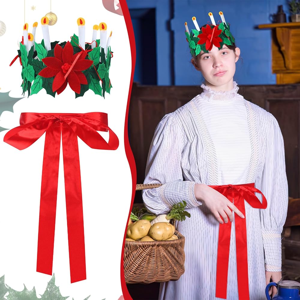 • Boutique set: The set contains 1 Christmas St. Lucia Crown Candle felt crown and 1 bright red silk belt. The product set is complete in quantity and can be applied for Christmas activities. It is exquisite and interesting