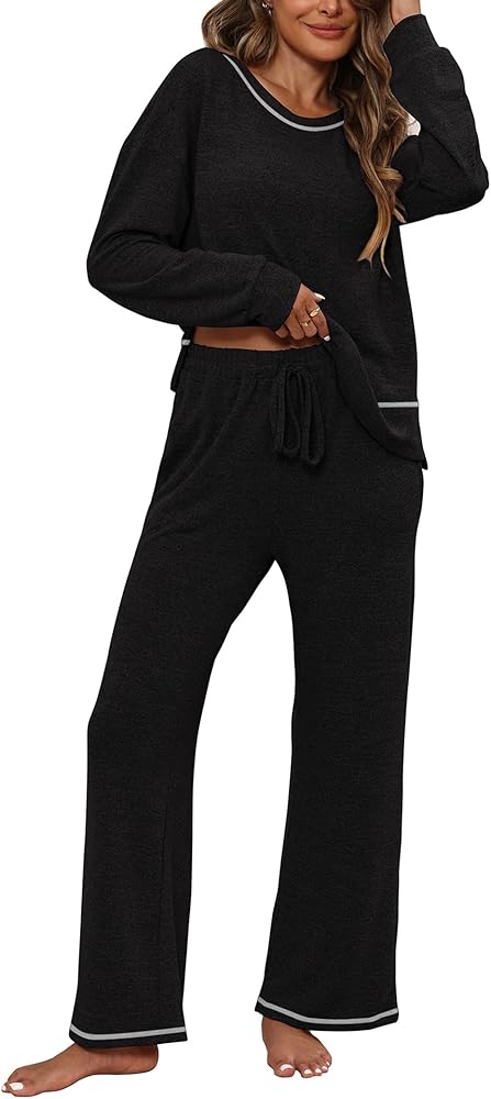 【أطقم بيجامات】: تشمل ملابس الخريف النسائية الجاهزة بنطالًا بجيبين في متناول اليد. تم تصميم الخصر بشريط مطاطي ناعم ورباط، والذي لا يناسب أنواع الجسم المختلفة فحسب، بل يضمن لك أيضًا البقاء مرتاحًا ومسترخيًا أثناء الخريف والشتاء.