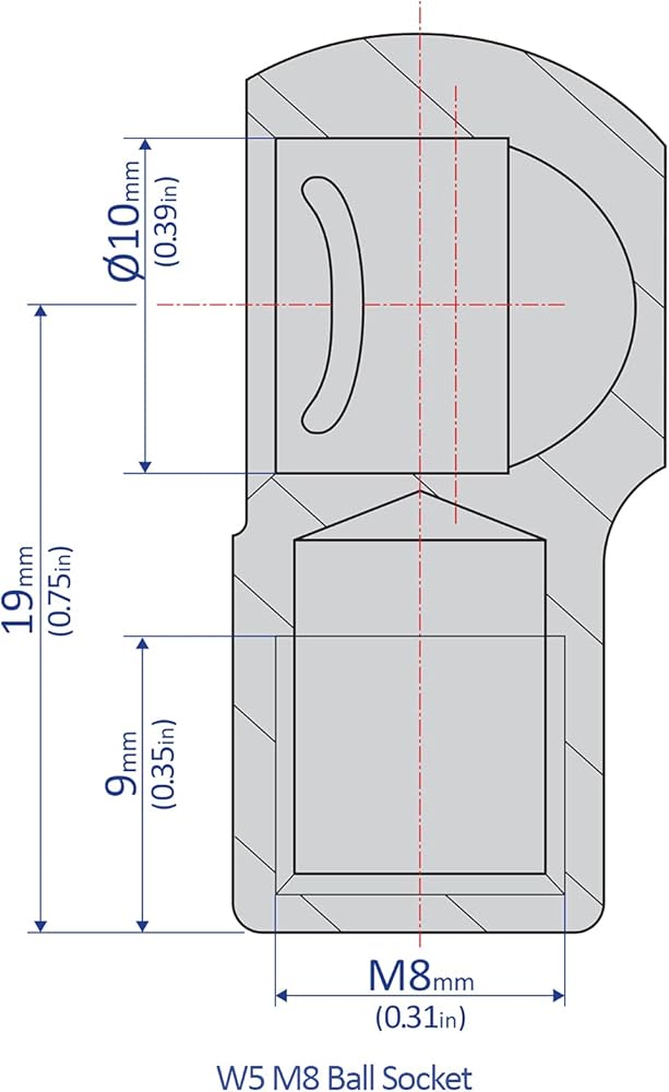 Bansbach Easylift: W5 مقبس كرة مع M8 خيوط، الطول: 19 مم، خيوط الإناث: M8x1.25، قطر المقبس: 10 مم