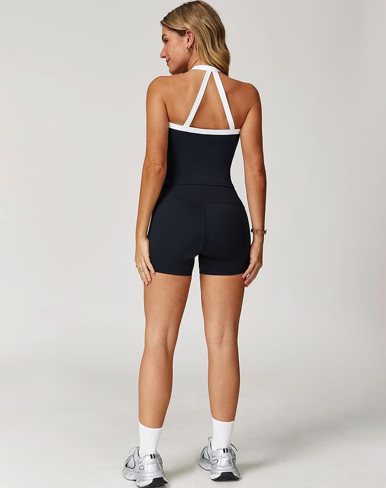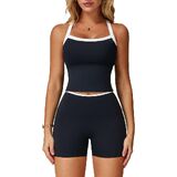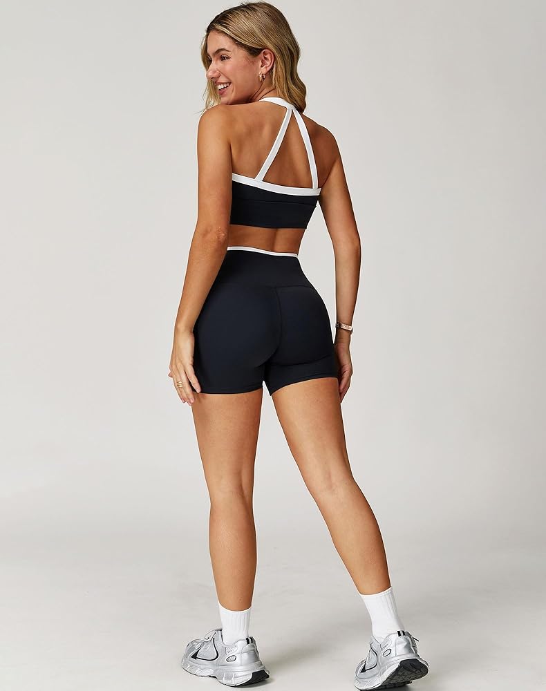 نسيج عالي الأداء: مصنوع من 78% نايلون، 22% سباندكس، طقم الصالة الرياضية هذا للسيدات مصنوع من نسيج ناعم بشكل لا يصدق، ومريح، ويتميز بتمدد في 4 اتجاهات. استمتع بنسيج مسامي يتخلص من العرق مع شريط أنيق متباين وأنابيب بيضاء لمزيد من البعد
