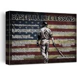 البيسبول ملصق قماش جدار الفن لغرفة المعيشة غرفة نوم ديكور المنزل، البيسبول دروس الحياة تحفيزية قماش طباعة اللوحة 12x15 بوصة