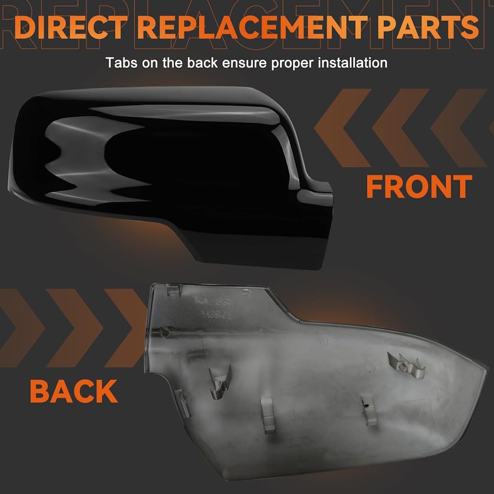 Easy Installation: These are replacement mirror cover units, you need to remove the old mirror caps and replace with these new ones, clips into place for simple installation. Made to stay applied and brilliant for the life of your vehicle