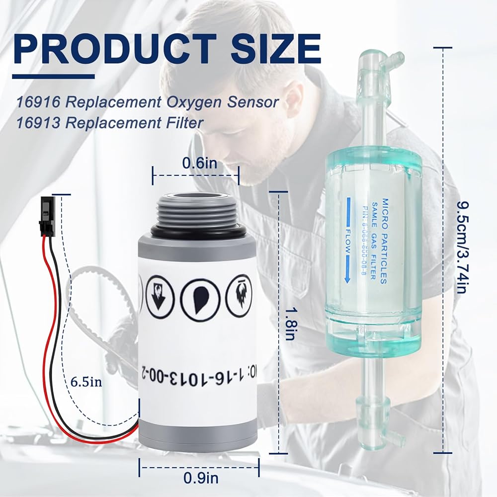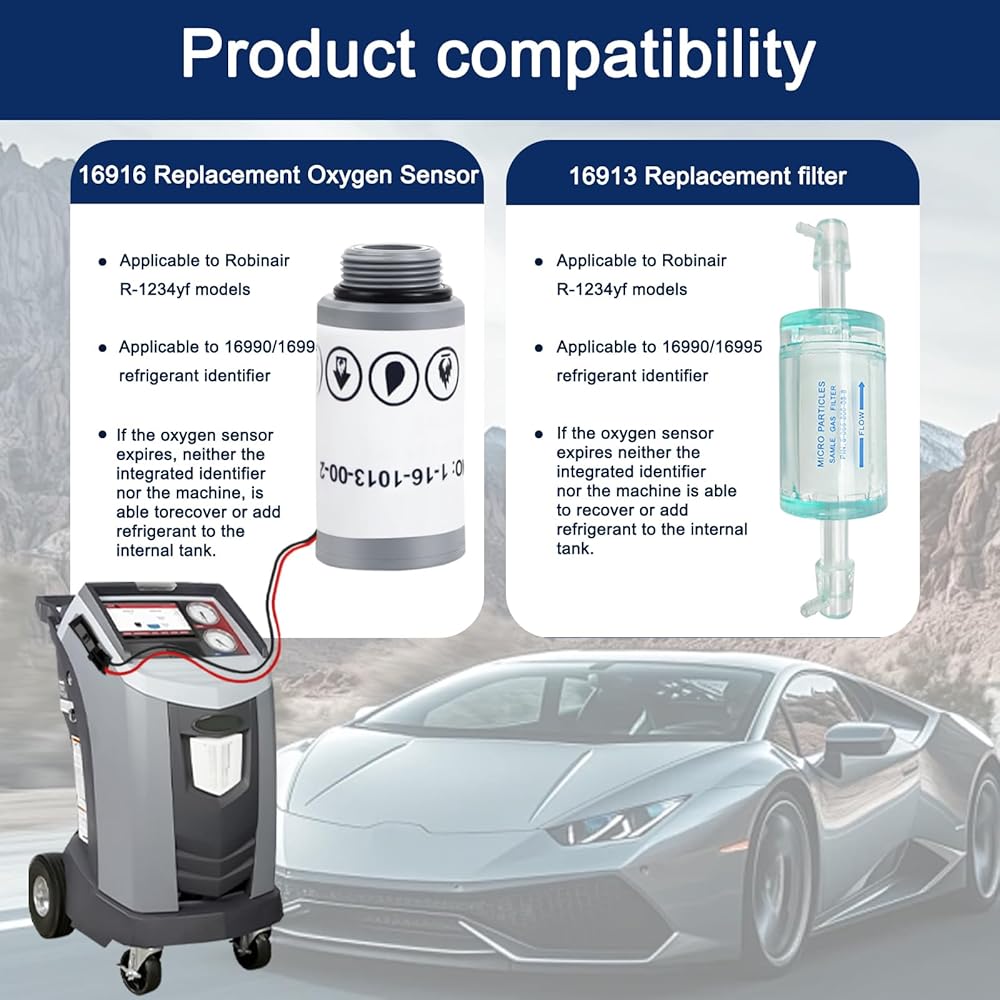 مستشعر O2 16916 متوافق مع مستشعر Robinair 16916 البديل، مستشعر O2 1-16-1013-00-2، يناسب أجهزة التيار المتردد R1234yf - يتضمن فلتر معرف المبرد 16913.