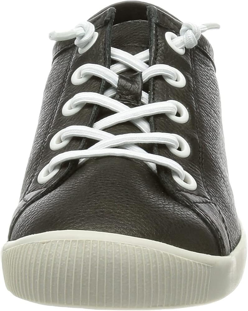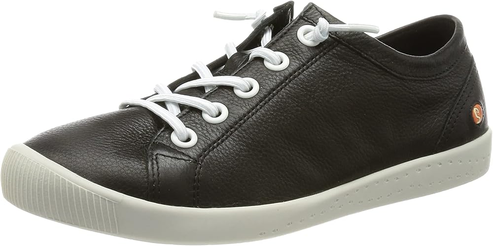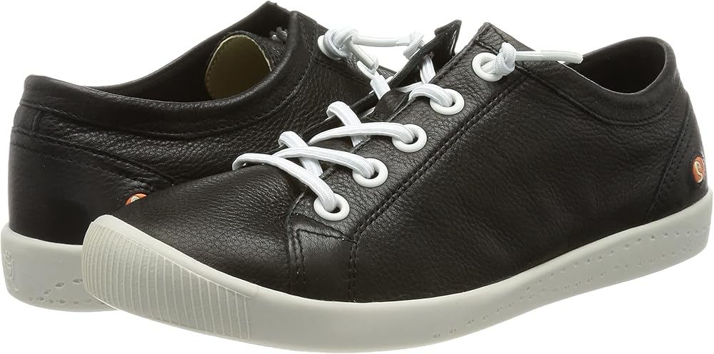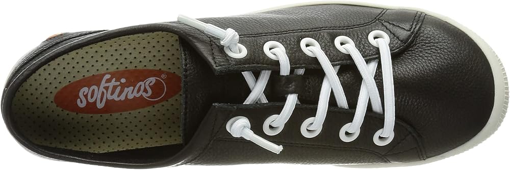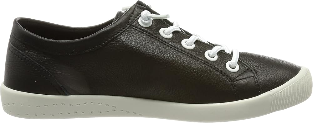 Sporty softinos trainers made from super soft genuine leather upper in fashionable black. The laces are white and elastic, so that the shoe works like a slip-on shoe. Once adjust the knot on the laces and then never tie again. The sole is white and the insole is removable. Soft shoes for maximum walking comfort.
