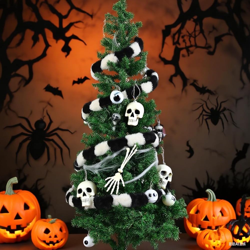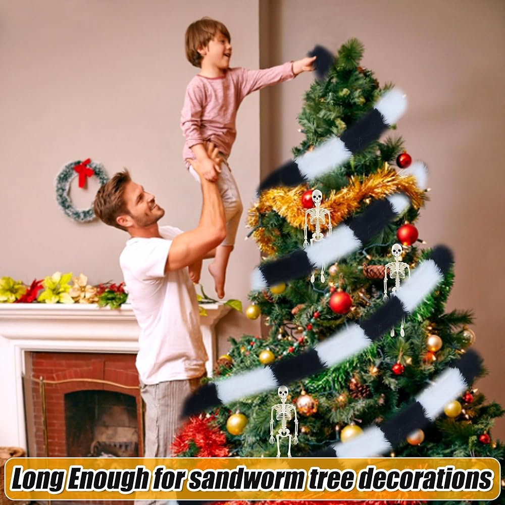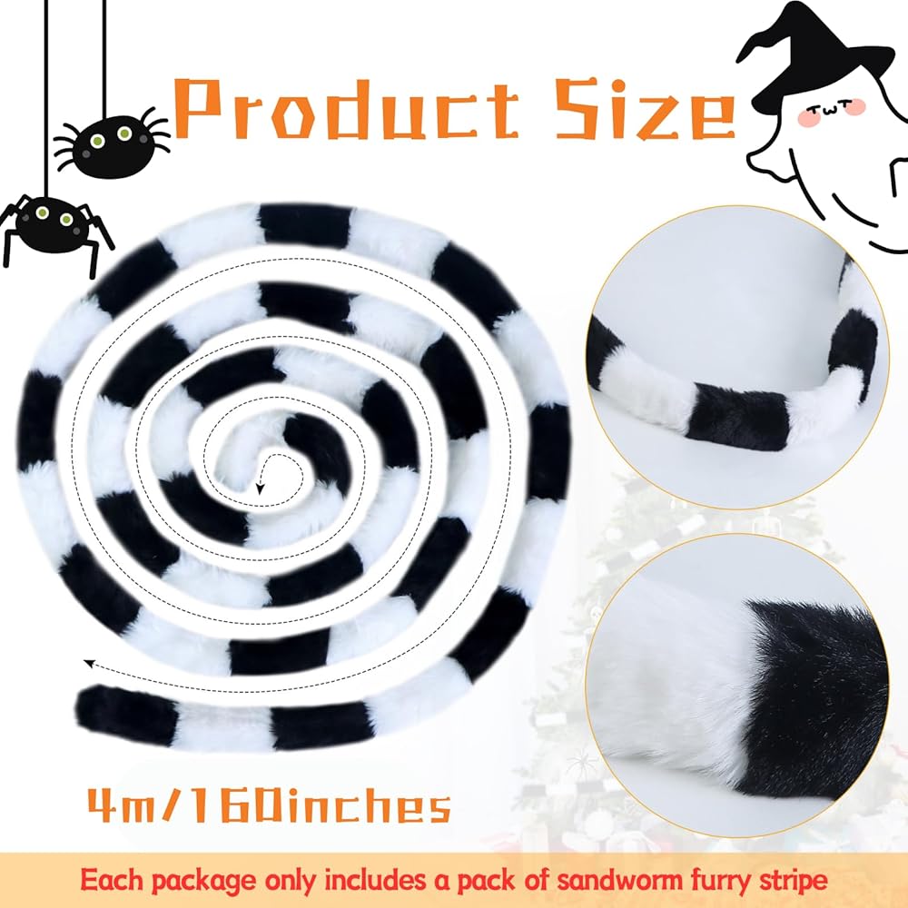 【تشمل العبوة】سوف تحصل على زينة شجرة الدودة الرملية للهالوين بطول 13 قدمًا (160 بوصة)، وشريط فرو صناعي أبيض وأسود، مجموعة مثالية لشجرة عيد الميلاد المخيفة. (ملاحظة: يتم قطع منتجنا يدويًا وقد يحتوي على بعض الفراء العائم، مما لا يؤثر على استخدامه.)
