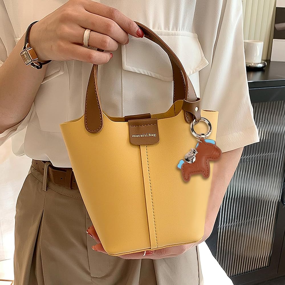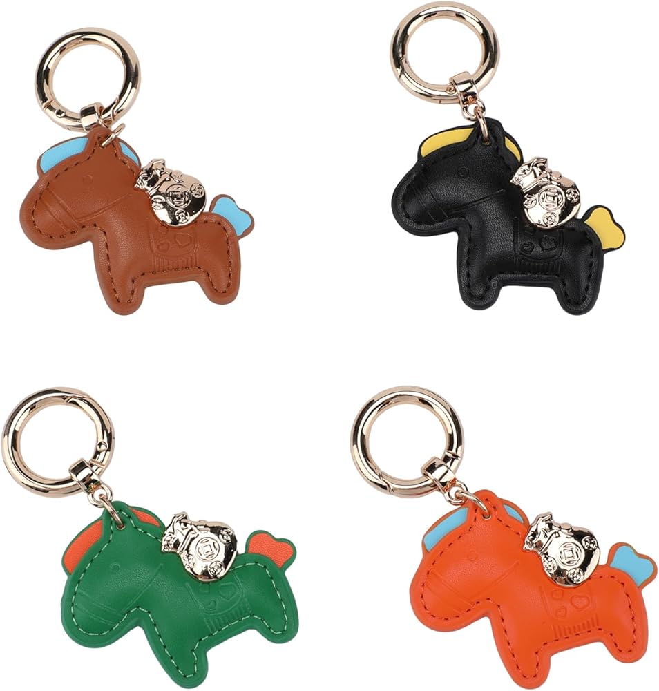 4Pcs Leather Horse Bag Charm Horse Shaped Keychain Keyring Cute Leather Animal Ornament for Purse Handbags Bag Accessories Handmade Key Holder Charm Gifts(Black, Orange, Brown, Green)