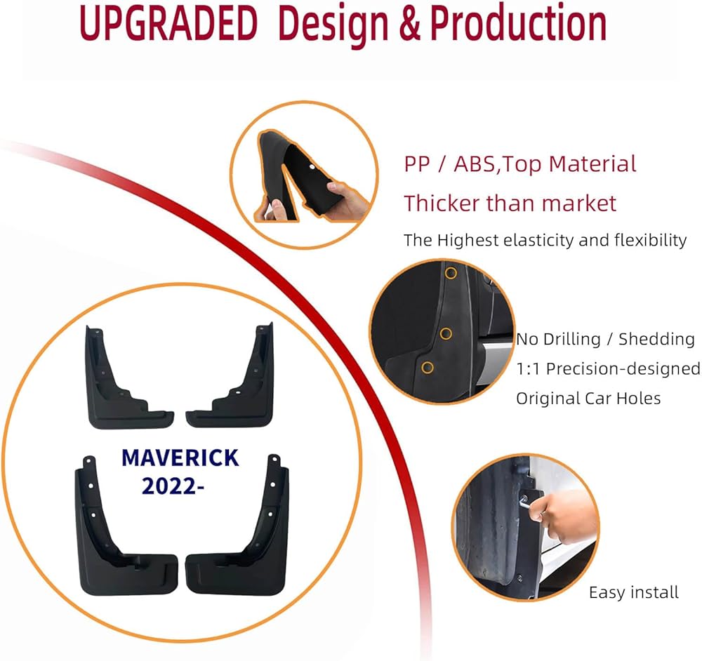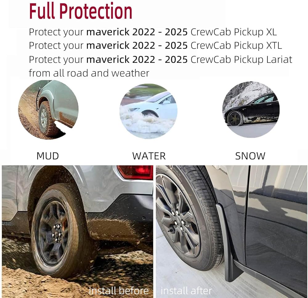 • Updated Desgin Mud Flaps - Fits for Ford Maverick 2025 2024 2023 2022 only, not universal Mudguard,not loderas universal para
