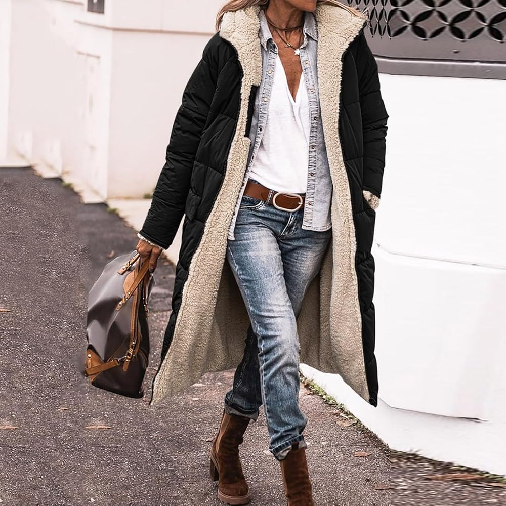 التصميم: يتميز هذا المعطف ذو الأكمام الطويلة بتصميم بسيط وأنيق، يتميز بتعدد الألوان والصورة الظلية الأنيقة. تتيح الميزة الفريدة ذات الوجهين الحصول على مظهرين متميزين في قطعة واحدة، مما يلبي تفضيلات الموضة المتنوعة