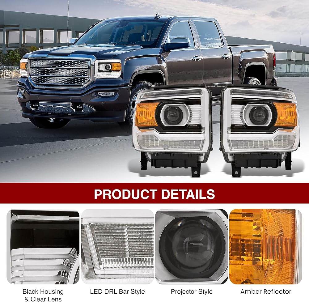متوافق/بديل لـ: 2014-2018 Sierra 1500 / 2015-2019 Sierra 2500HD 3500HD (نماذج المصابيح الأمامية الهالوجين من المصنع فقط).