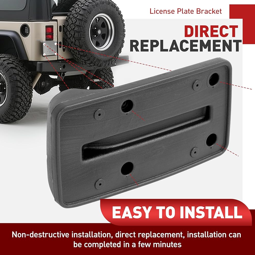 توافق السيارة: دعامة لوحة الترخيص الخلفية متوافقة مع سيارة جيب رانجلر TJ 1997-2006. بديل لـ 55174994. يمكن استبداله بسهولة وبشكل مباشر لتثبيت آمن ومستقر
