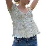 المواد: قمصان قصيرة كلاسيكية للسيدات، قميص y2k الجني القصير، قميص بدون أكمام مكشكش y2k، قمصان بدون أكمام للنساء مصنوعة من البوليستر. نعومة جيدة وتهوية لطيفة. قمصان الحفلات للنساء مريحة في الارتداء.