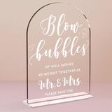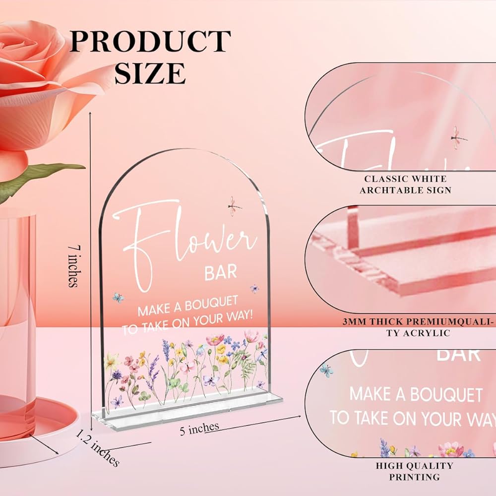 Package Included: Includes an 5" x 7" white arched acrylic sign with a thickness of 0.12" and comes with an acrylic base measuring 5 x 1.8 inches.