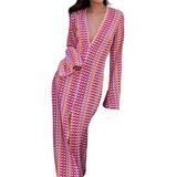 فستان حريمي كروشيه ملون بأكمام طويلة وفتحة رقبة على شكل V فستان ماكسي فضفاض مثير بوهو العيينة فساتين طويلة مع فتحة
