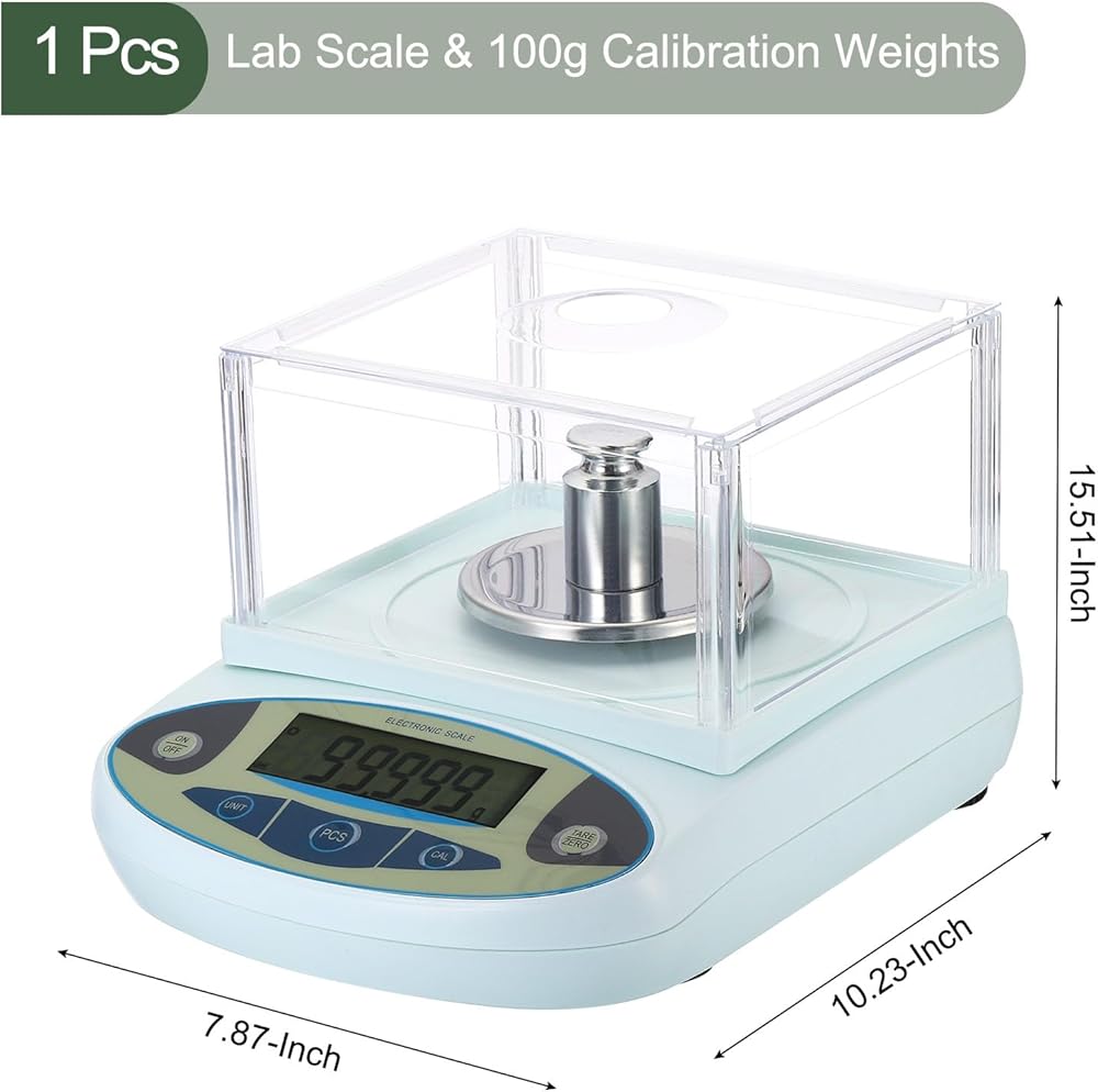 • √ ما تحصل عليه - تأتي العبوة مع قطعة واحدة من ميزان المختبر وأوزان معايرة 100 جرام، ودليل تعليمات، ومحول طاقة (تيار متردد 110 فولت - 240 فولت).