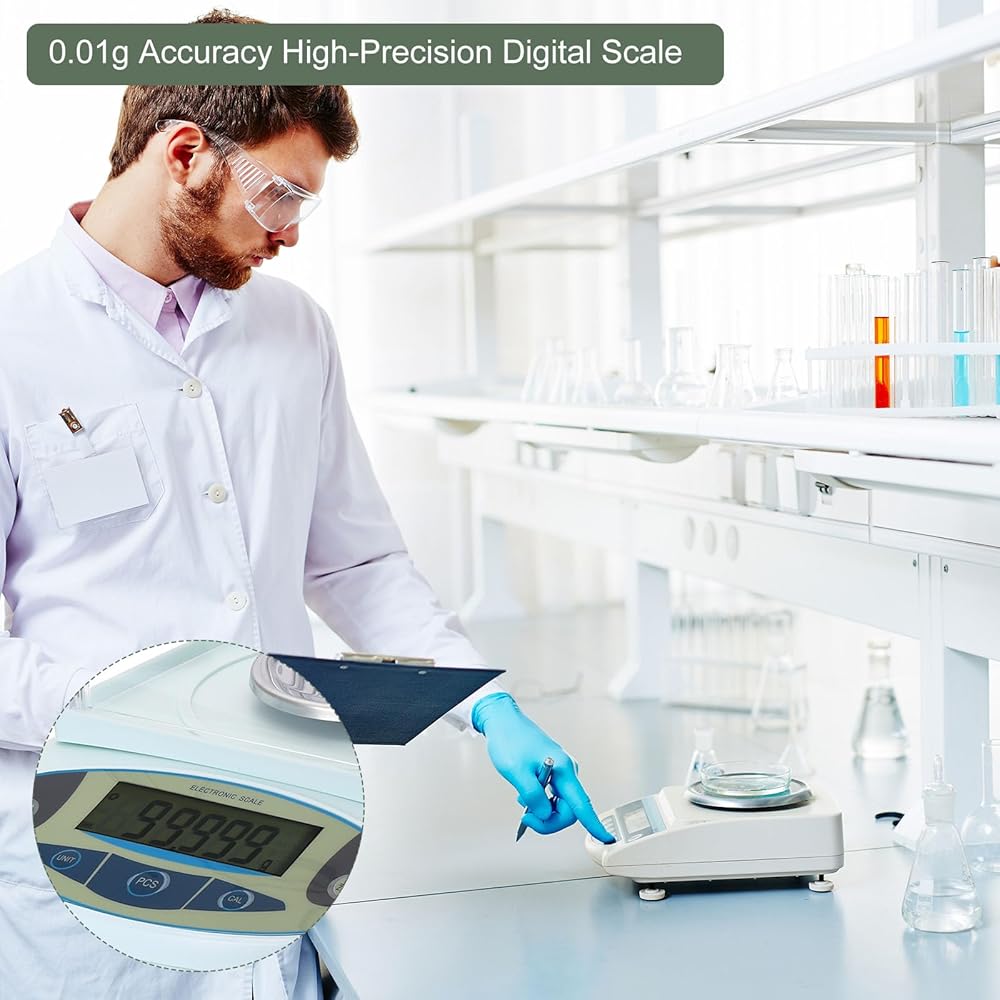 ميزان مختبر YOKIVE، ميزان علمي رقمي إلكتروني عالي الدقة | رائع للاستخدام اليومي في المنزل والمختبر والمطبخ (100 جرام × 0.001 جرام)