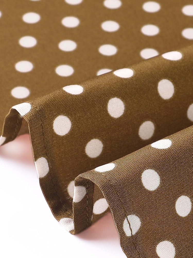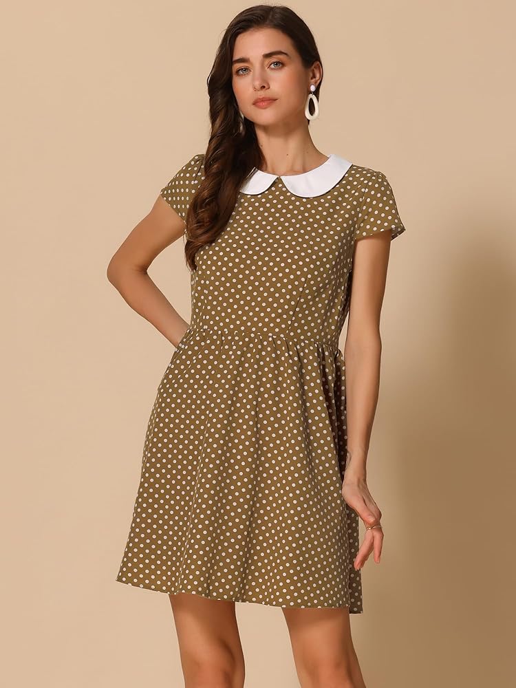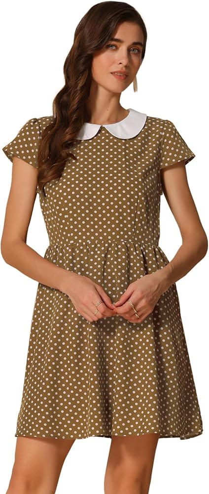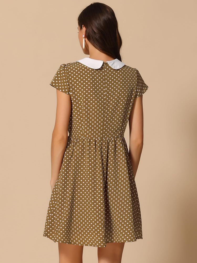 - فستان للنساء 2023، سحاب خلفي مخفي، مبطن جزئياً، غير قابل للتمدد، كم قصير، منقط، ياقة بيتر بان متباينة