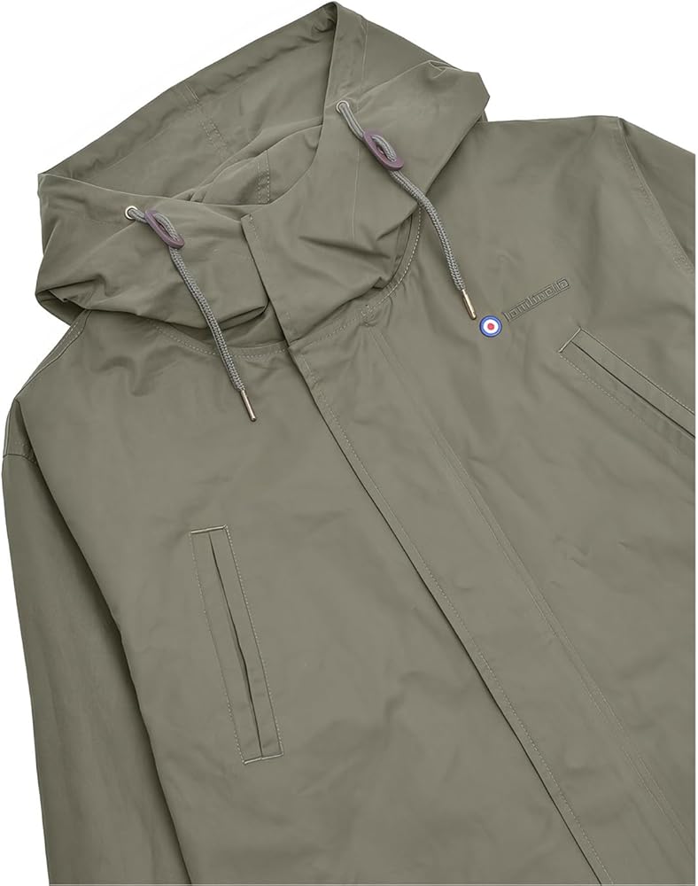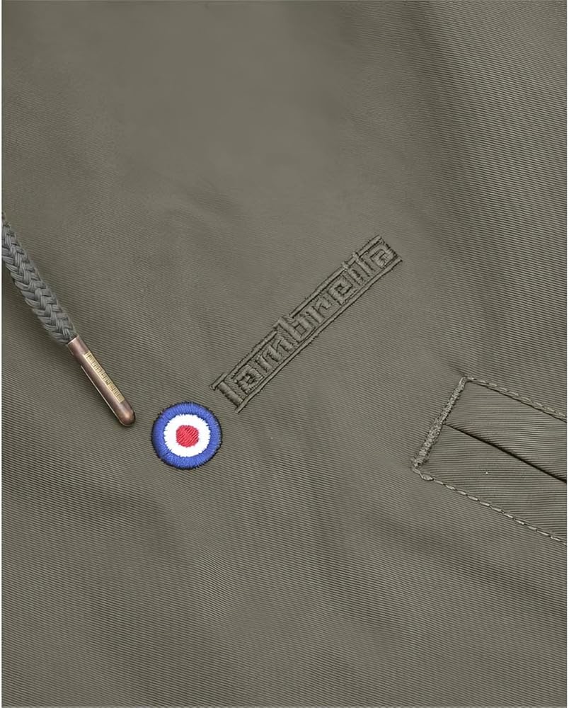 - فتحة خلفية، سلك مجدول، أزرار تحمل العلامة التجارية، سحاب سحب يحمل العلامة التجارية، ثقوب معدنية.