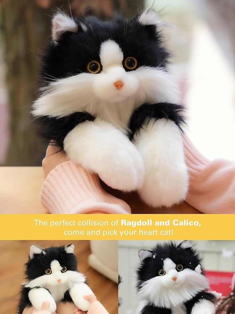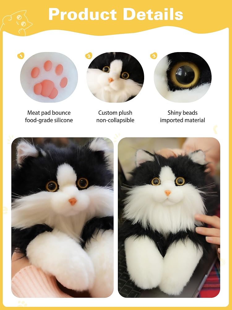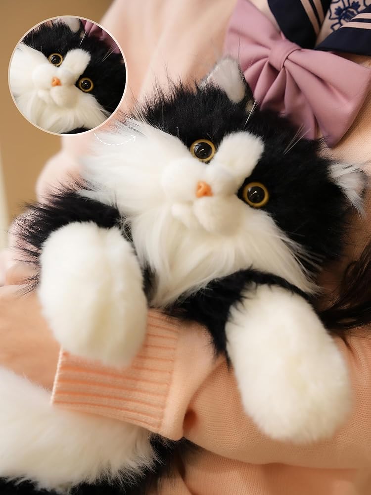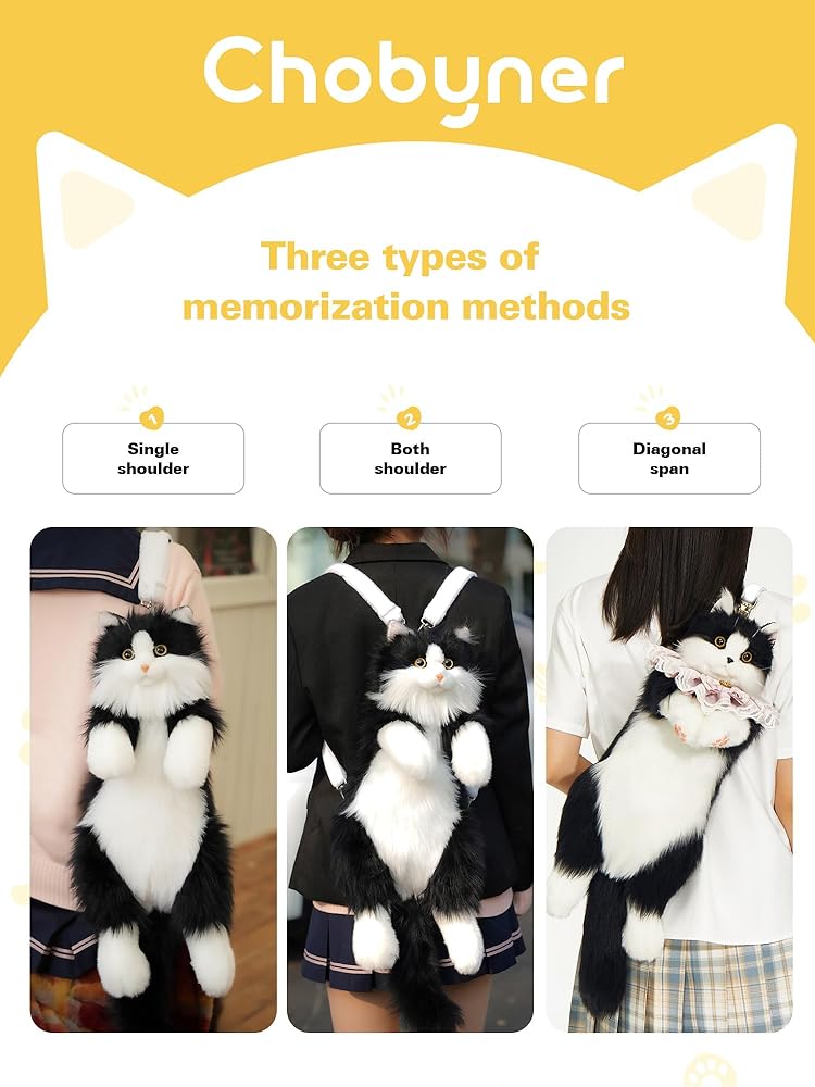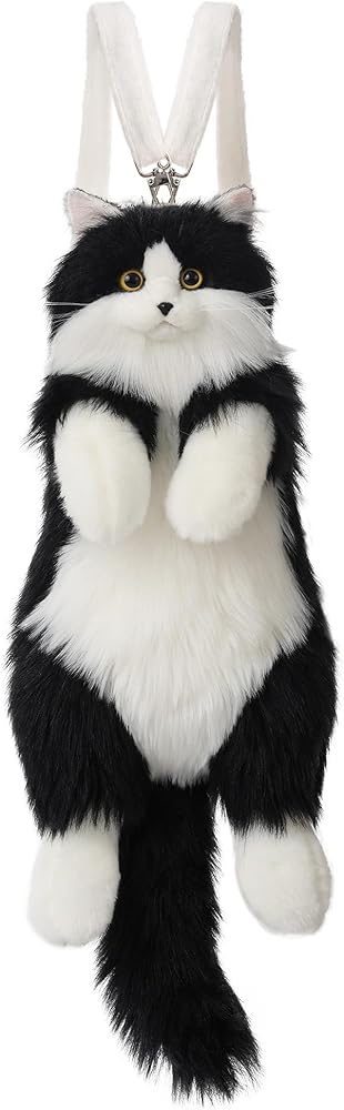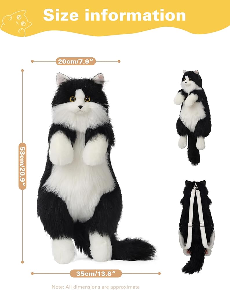حقيبة ظهر من القطيفة المحشوة على شكل قطة واقعية هدية للفتيات والأخت والابنة - يمكن حملها على الكتف، على كتف واحد أو على الجسم مع أشرطة قابلة للتعديل حقيبة ظهر لطيفة وناعمة على شكل حيوانات محشوة