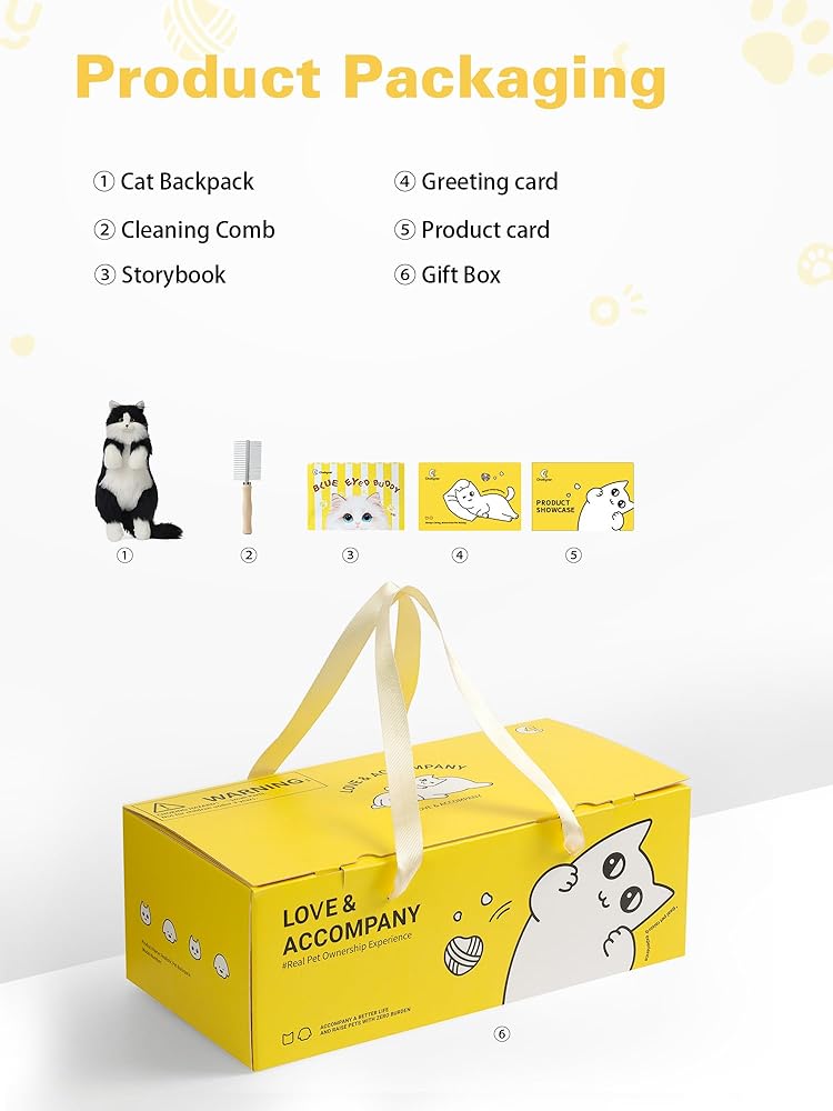 متضمنة في العلبة: تأتي كل حقيبة ظهر للقطط مع عبوة صندوقية ملونة جميلة، والتي لا تحمي حقيبة ظهر حيوانك الأليف فحسب، بل تجعل تجربة الخروج من الصندوق أكثر إثارة للدهشة. سيتم أيضًا تضمين مشط بالداخل لمساعدتك على العناية بسهولة بحقيبة قطتك والحفاظ عليها بمظهر مثالي في جميع الأوقات؛ بطاقة قصة لتحكي قصة مريحة مع القطة؛ وبطاقة منتج يمكنك من خلالها كتابة قصتك الخاصة أو إضافة نعمة دافئة عندما تقدمها لأصدقائك