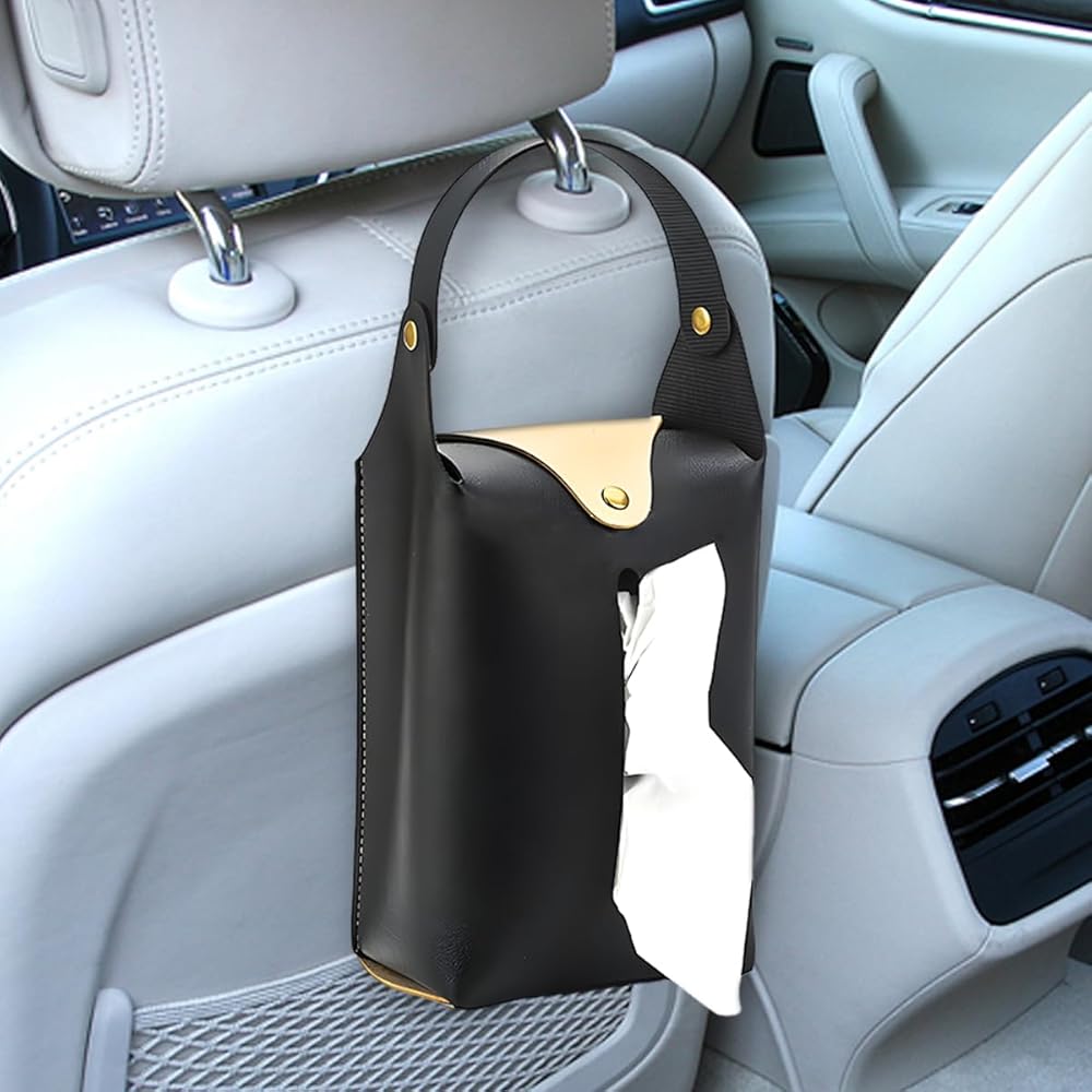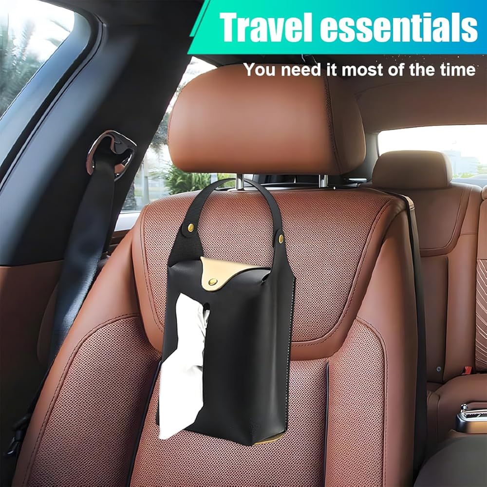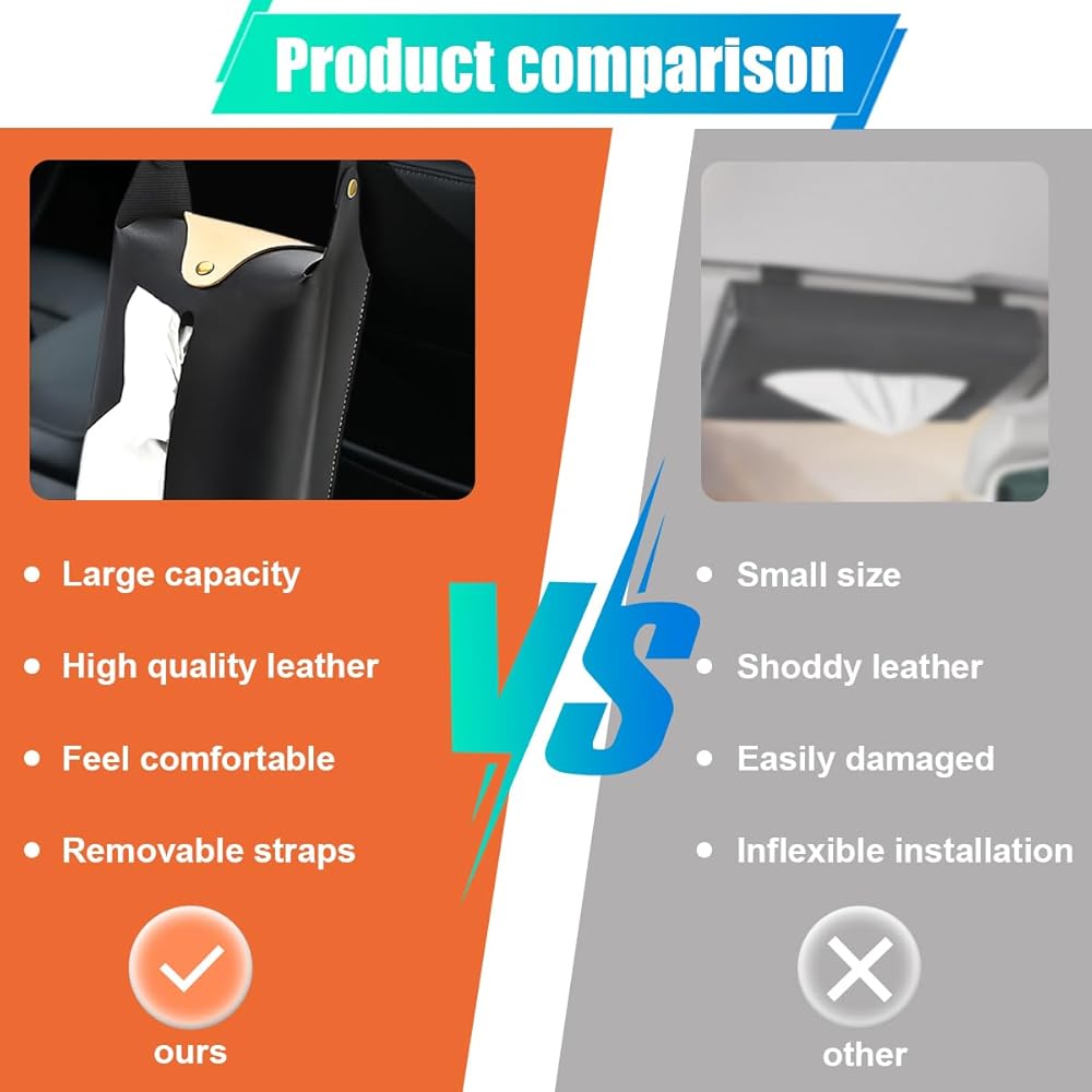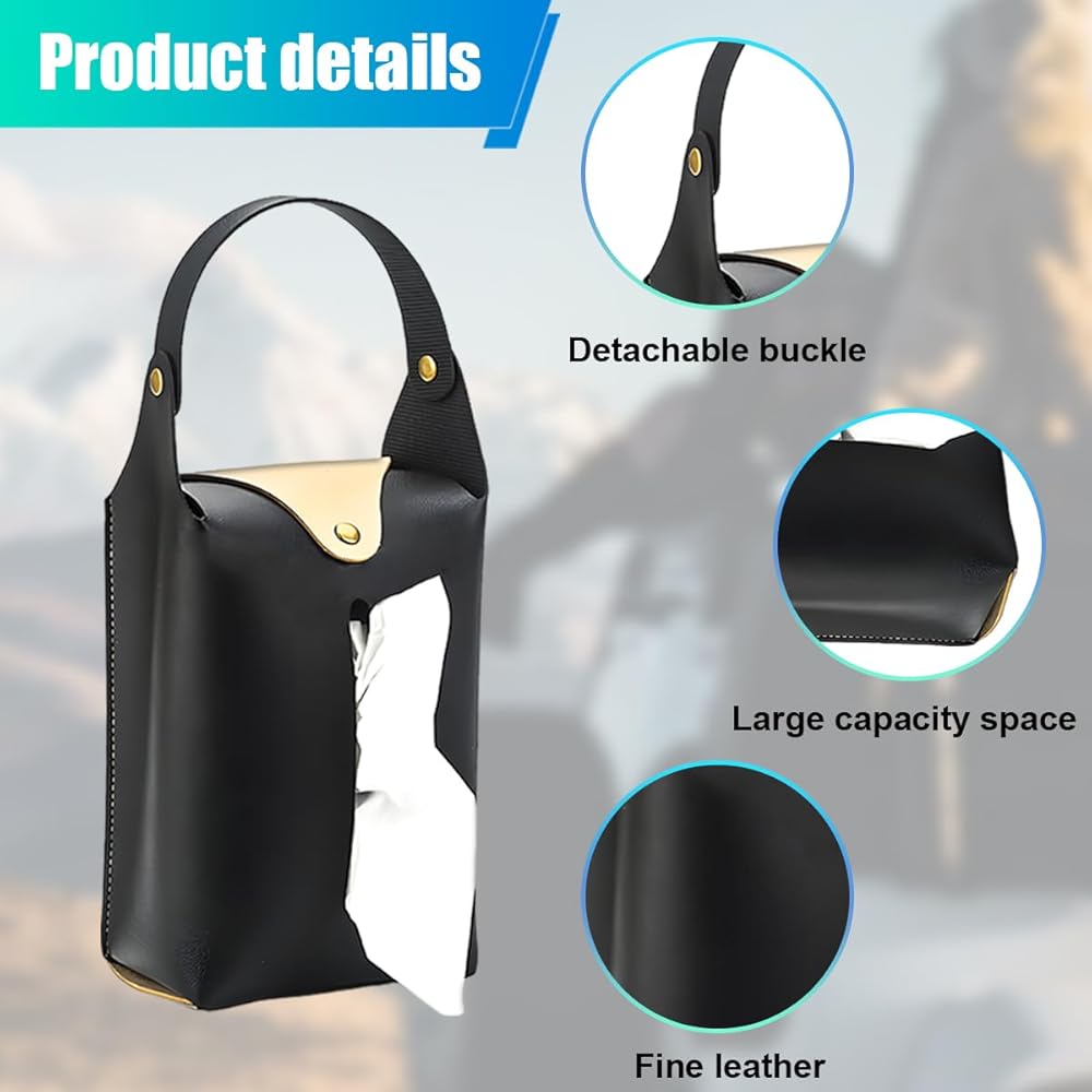 This car tissue holder is made of high-quality PU leather, which is waterproof, thick, and wear-resistant, and can effectively prevent tissues from moisture and dust.