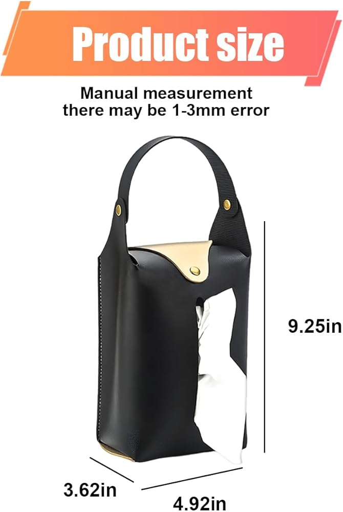【High-Quality】: This car tissue holder is made of selected high-quality PU leather, well made, the overall material is thick, with excellent wear resistance, and is not easy to break. At the same time, the leather texture is comfortable to the touch, the surface is smooth and easy to clean. A gentle wipe with a damp cloth can easily remove dust.
