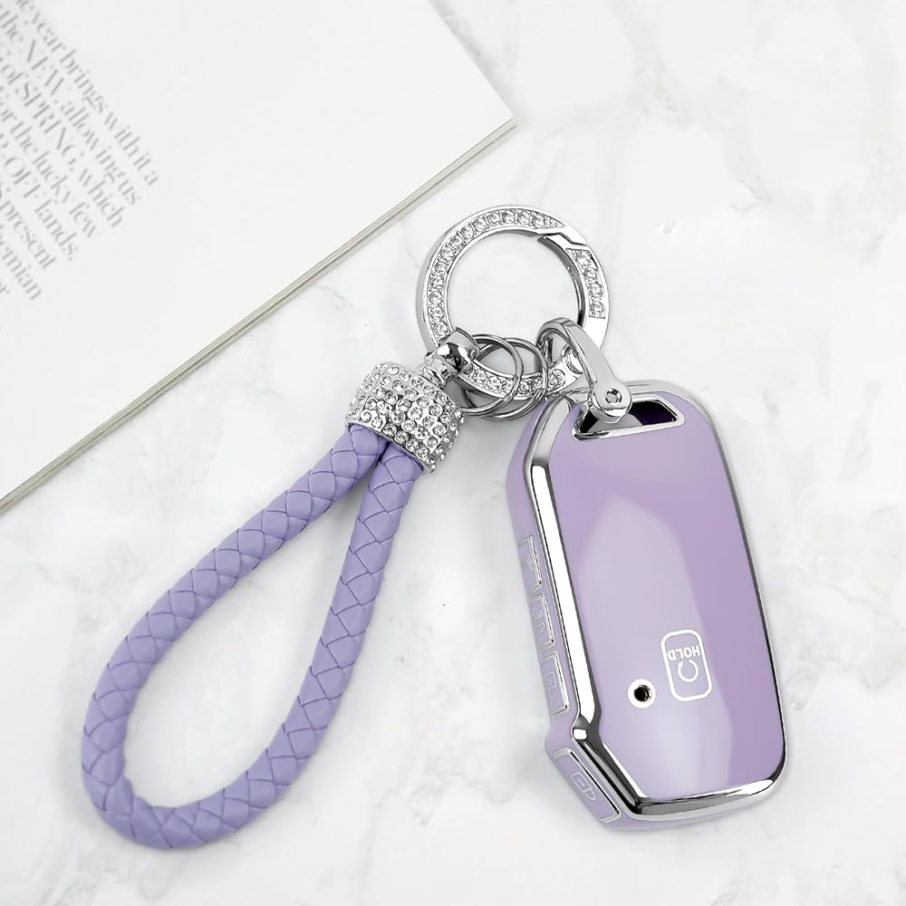 • 【مادة ممتازة】 مصنوع من مادة TPU الناعمة، غطاء لوحة المفاتيح رفيع للغاية وناعم ومتين. المزيج المثالي بين التصميم ذو الحواف الفضية وسلسلة المفاتيح الملونة المصنوعة من حجر الراين يقدم مظهرًا رائعًا وأنيقًا، يظهر الجمال الأنيق لمالك السيارة.