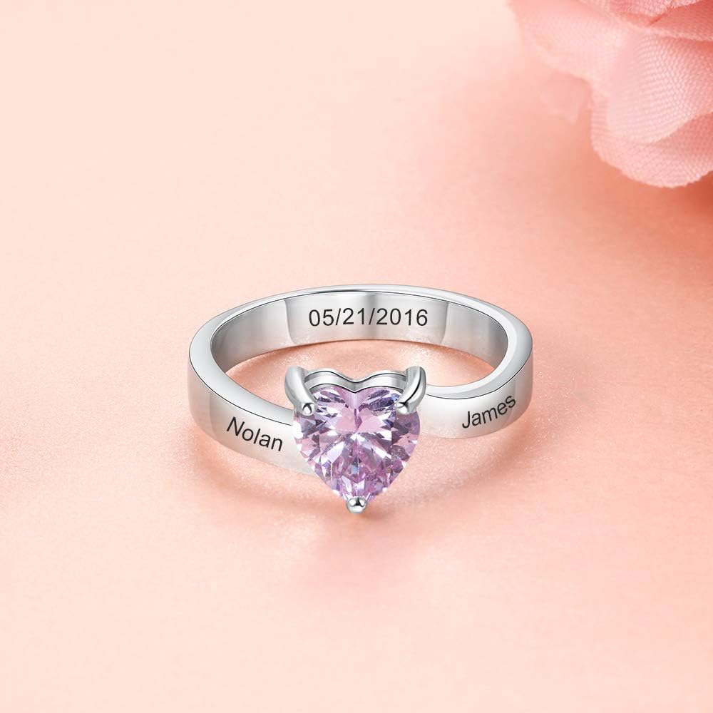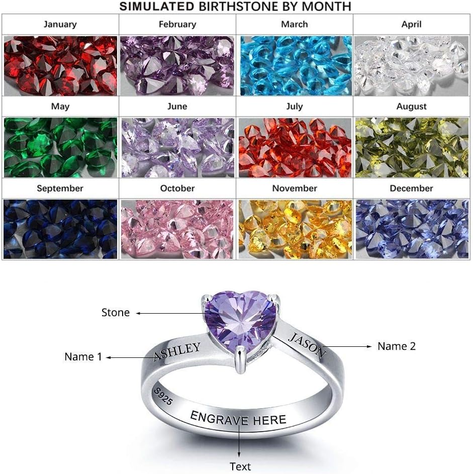 GLAMCARAT خاتم من الفضة الإسترليني على شكل قلب مخصص للأم مع 1 جوهرة ميلاد على شكل قلب محفور عليه اسم مخصص