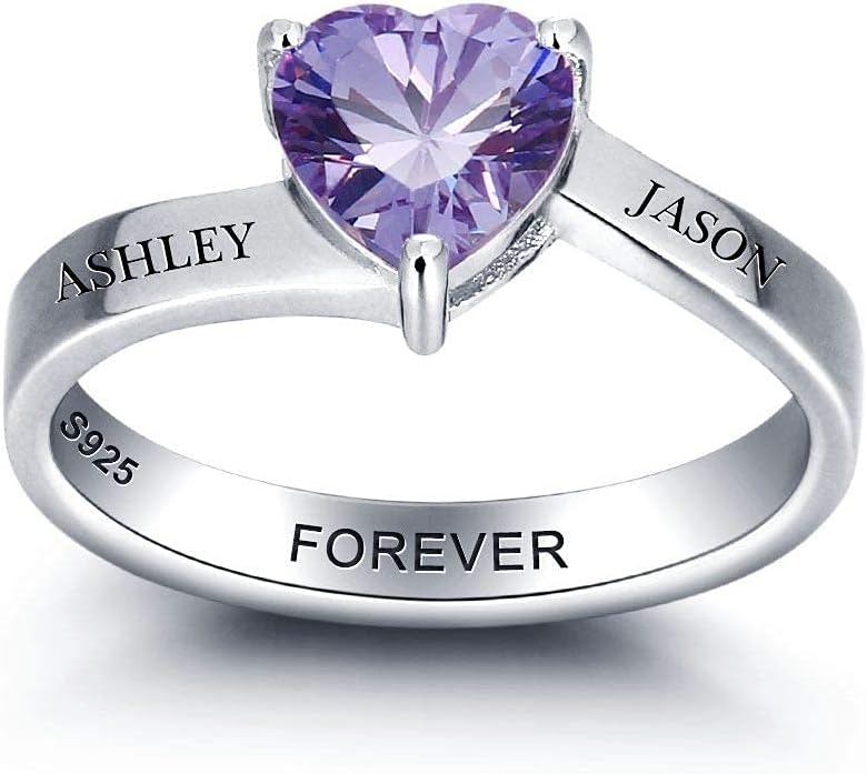 • Custom Engraved Design: Personalize your sterling silver ring with your choice of name, date, or meaningful text, beautifully engraved alongside a stunning heart-shaped stone.