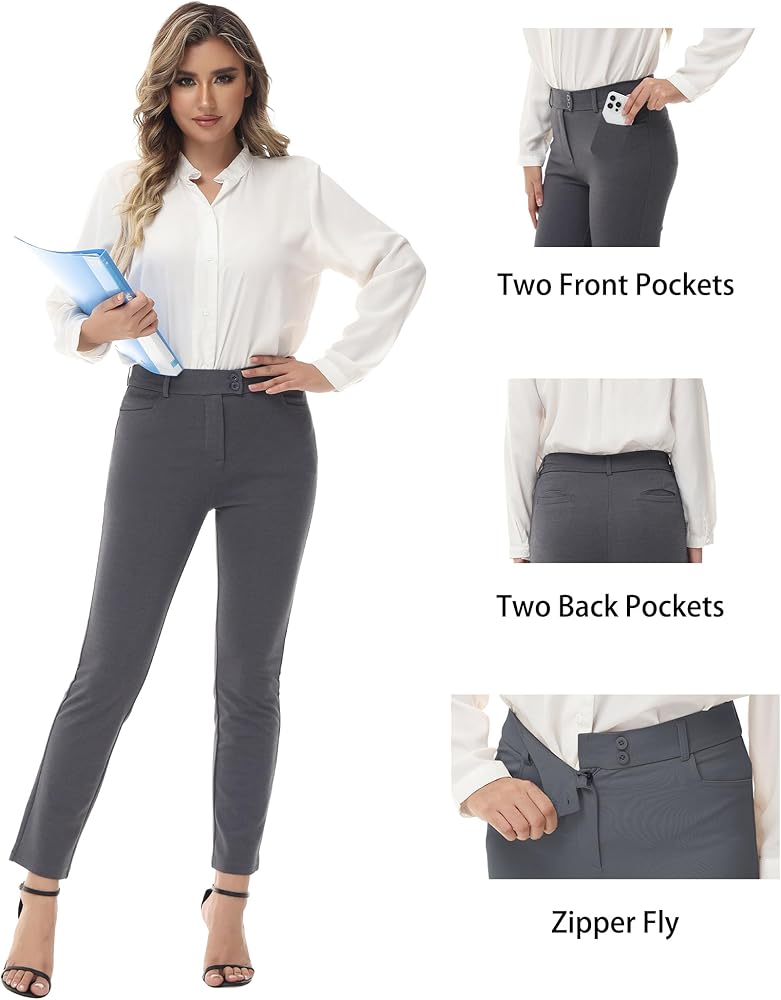 ZTN Women's Stretchy Dress Pants with 4 Pockets Pull-on Straight Leg for Work Business Casual Golf