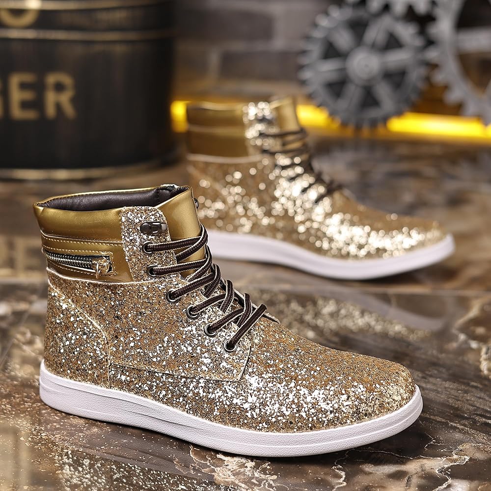 • 【متعددة الاستخدامات في كل مناسبة】من الحفلات الموسيقية والتجمعات إلى الحفلات والعروض وليالي البار والارتداء اليومي، تعد هذه الأحذية الرياضية اللامعة إضافة لا غنى عنها لمجموعة أحذيتك.