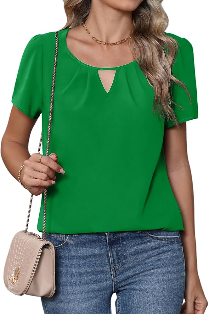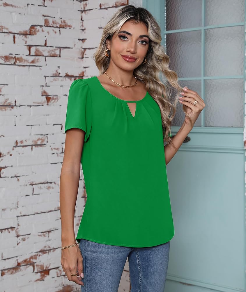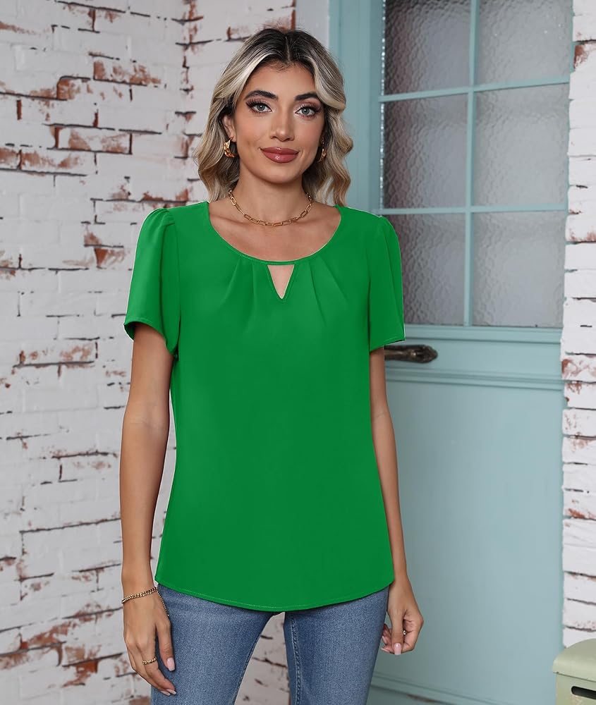 النمط: بلوزة شيفون كاجوال، بلوزة أنيقة بأكمام قصيرة للنساء، بلايز برقبة دائرية وأكمام قصيرة للنساء