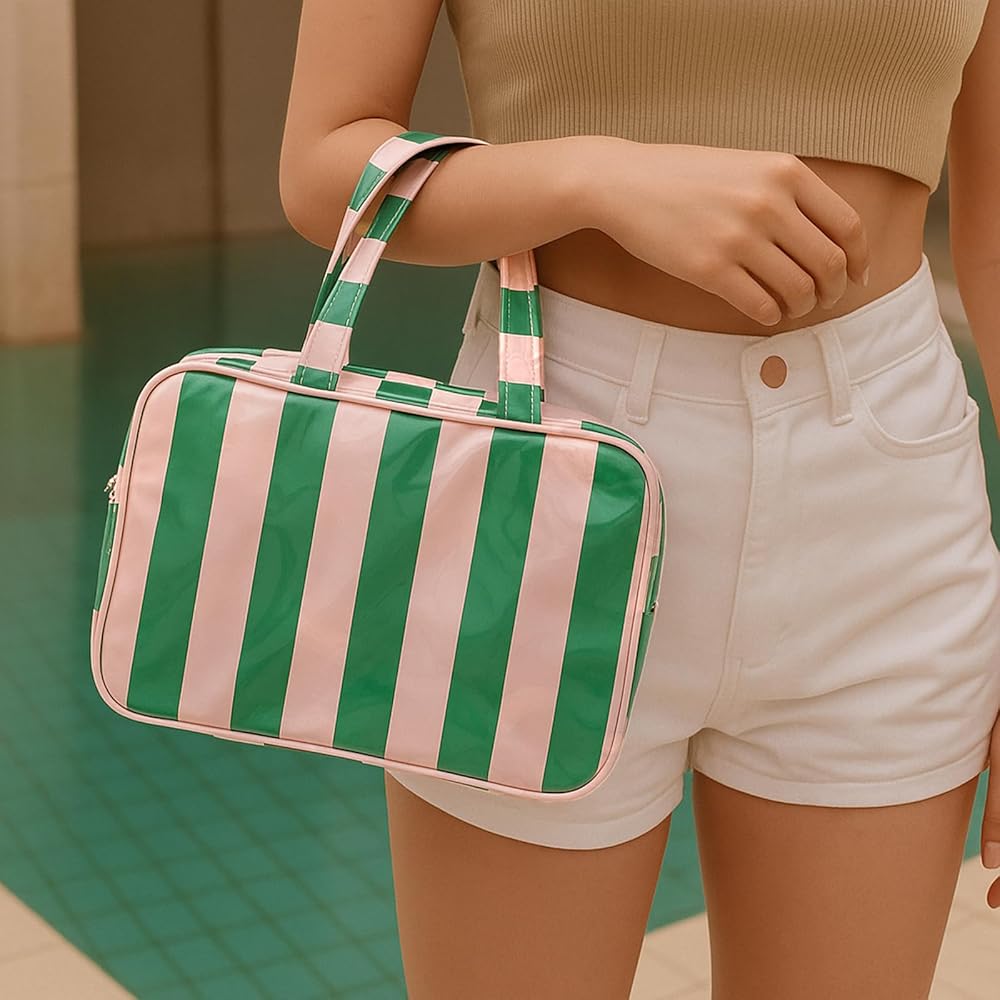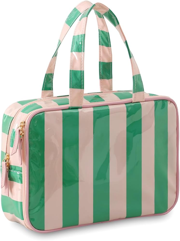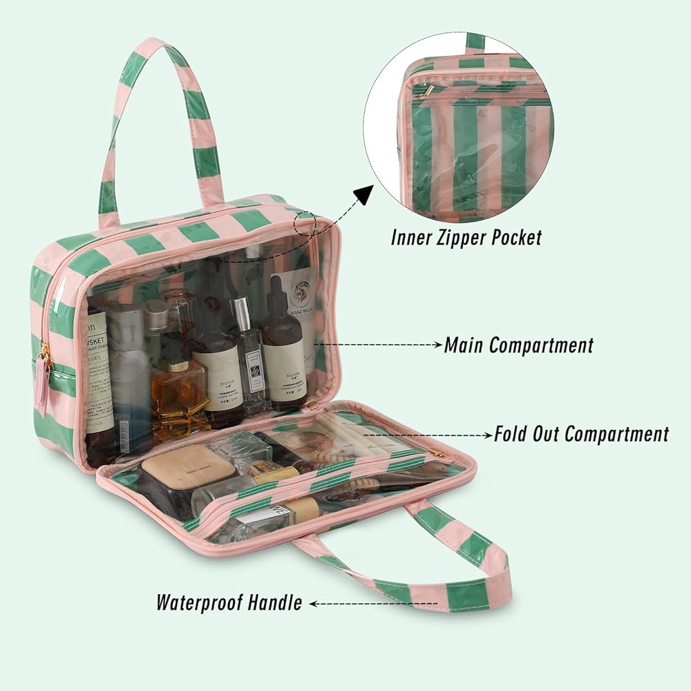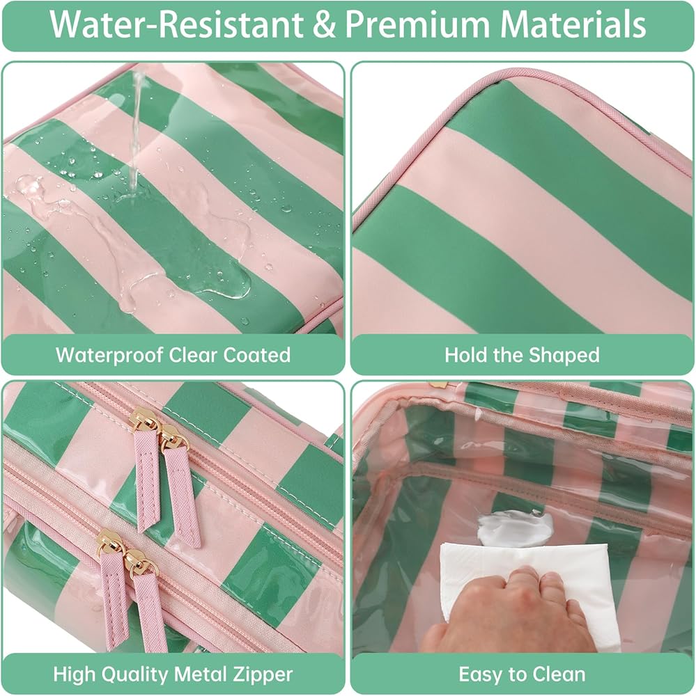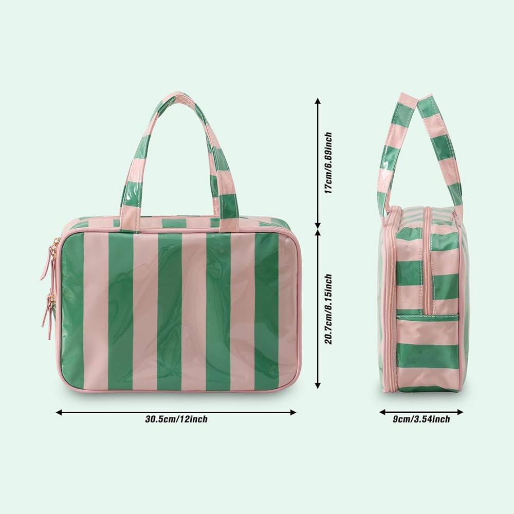 【مادة مقاومة للماء من البولي فينيل كلوريد】 تتميز حقيبة أدوات الزينة هذه بطبقة شفافة لامعة قابلة للمسح من الداخل والخارج، مما يجعلها سهلة التنظيف، وبنية متينة، تحافظ على إكسسوارات السفر الخاصة بك منظمة أثناء التنقل. قماش متين ومقاوم للماء يحمي أمتعتك من الانسكابات. تتيح لك المقصورات الشفافة معرفة مكان متعلقاتك دائمًا، لذلك لا داعي للقلق أبدًا بشأن نسيان إحضار أي شيء. المقابض العلوية تجعل من السهل حمل هذه الحقيبة وتعبئتها داخل حقيبة عطلة نهاية الأسبوع.
