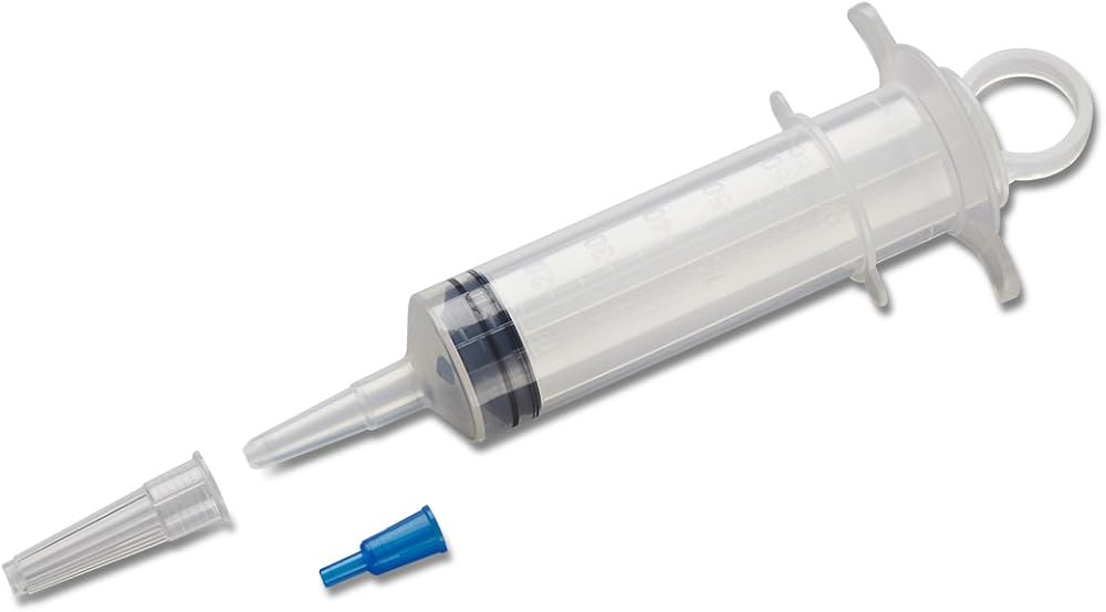 Contro-Piston Syringe offers uninterrupted action in a single-hand technique. The sterile, disposable syringe with thumb ring is designed to minimize hand slippage and prevent contamination. The barrel features raised, large and easy-to-read graduations, which are calibrated in Ounce and cc. The tip, elongated to facilitate tube feeding, has an extra-large orifice for better removal of clots and mucous shreds. Choose from three trays: Rigid Tray, Alcohol Pad, Sq. Jar, Drape and Tyvek Lidding; or Rigid Tray, Alcohol Pad, Sq. Jar, Drape, Tip Protector, 100mL 0. 9% NaCl and Tyvek Lidding; or Rigid Tray, Iodophor Pad, Sq. Jar, Drape and CSR Wrapping.